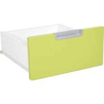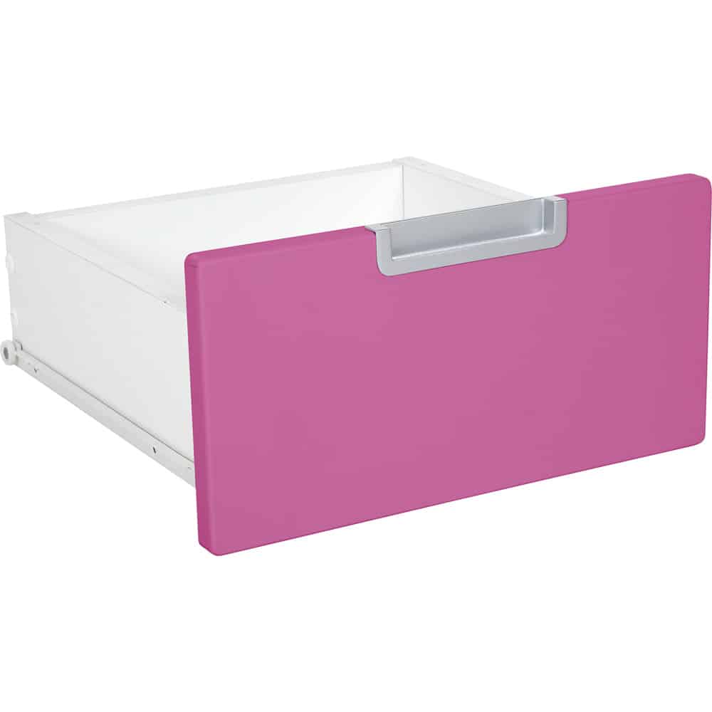 Die mittlere Schublade ist speziell für das Mittelfach von Schränken mit einer Breite von 116 cm und den Mittelfächern des Regals XL mit einer Breite von 154 cm konzipiert. Die Fronten aus farbig folierter MDF-Platte sind in zwölf attraktiven Farben erhältlich, sodass Sie die Schublade individuell anpassen können.