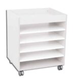 Das Herzstück dieses praktischen Helfers ist seine durchdachte Konstruktion. Er verfügt über mehrere flache Fächer mit einer einheitlichen Höhe von 11 cm. Diese Höhe ist ideal, um Papierstapel bis DIN A4, Hefte, Schnellhefter oder flache Bücher ordentlich und getrennt voneinander zu lagern. Anstatt alles in einem hohen Fach übereinanderzulegen, hat hier jeder Stapel seine eigene Ebene. Das erleichtert nicht nur den Überblick, sondern auch den Zugriff – Kinder und Erwachsene können gezielt das entnehmen, was sie benötigen, ohne den ganzen Turm durchsuchen zu müssen.