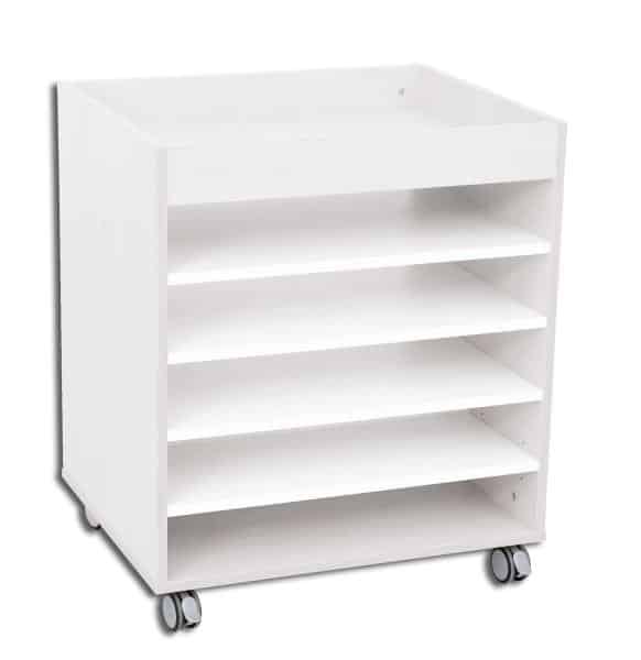 Die 6 cm hohe Kante auf der obersten Ebene verhindert das Herunterfallen von Kleinteilen. Stifte, Radiergummis oder Bastelmaterial bleiben sicher auf dem Wagen, auch beim Verschieben. - Vollständig mobil und standsicher