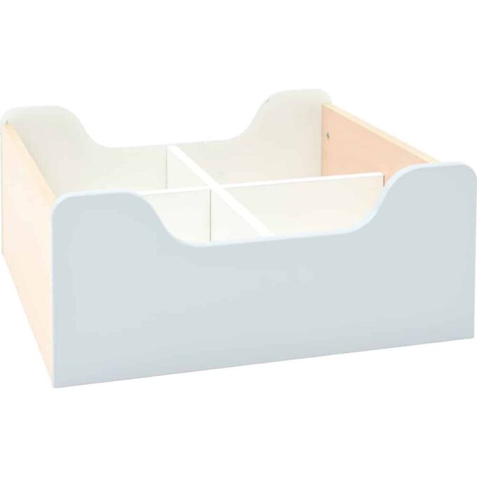 Mit vier großzügig dimensionierten Fächern (Maße pro Fach: 27 x 27 cm) bietet die Quadro Platz für eine Vielzahl von Büchern und Lehrmaterialien. Die robuste Konstruktion aus 18 mm starker, laminierter Spanplatte garantiert Langlebigkeit und Strapazierfähigkeit – Eigenschaften, die in einer lebhaften Lernumgebung unerlässlich sind.