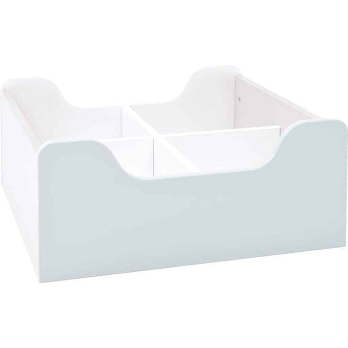 Entdecken Sie die Quadro – die quadratische Bücherkiste, die mit Stil und Funktionalität glänzt. Diese elegante Aufbewahrungslösung, in einem modernen Grauton gehalten, fügt sich nahtlos in jedes Raumkonzept ein, sei es im Kindergarten, in der Schule oder im Kinderzimmer zu Hause. Die markanten weißen Mittelwände und die klare Linienführung sorgen für eine strukturierte und moderne Optik.