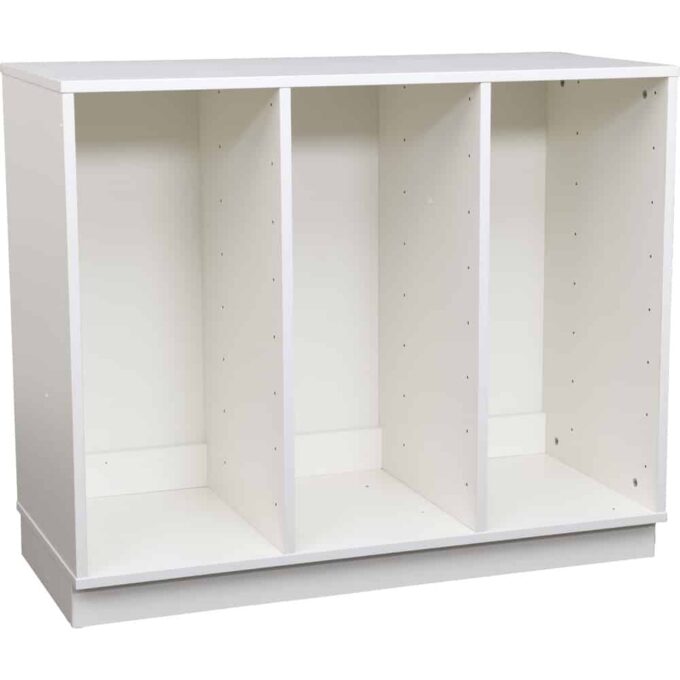 - Material: Laminierte Spanplatte (Stärke 18 mm), Mittelwände und Einlegeböden in Weiß