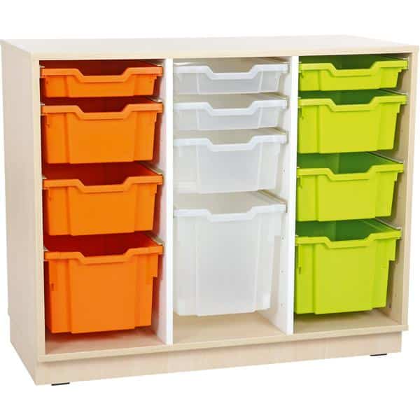 Dieses dreireihige Regal bietet platzsparenden Stauraum und ermöglicht eine individuelle Bestückung mit Kunststoffbehältern (372005-372026, 372034-372041, 372050-372073, separat bestellbar). Die Einlegeböden lassen sich flexibel anpassen, sodass Sie für jede Aufbewahrungsanforderung gerüstet sind.
