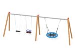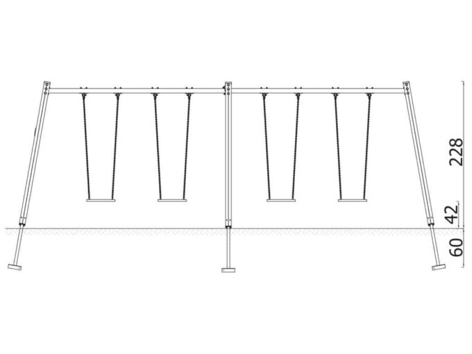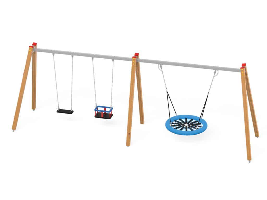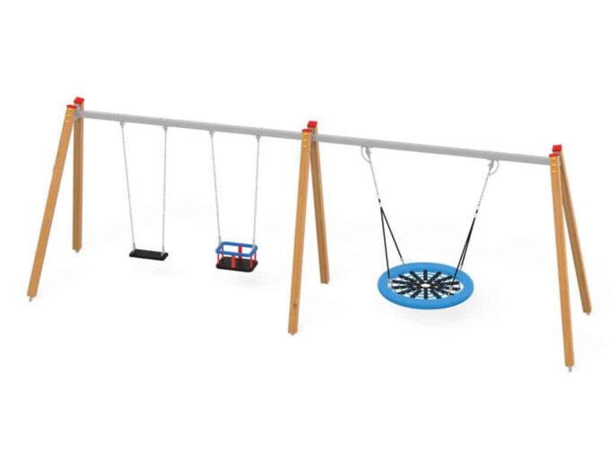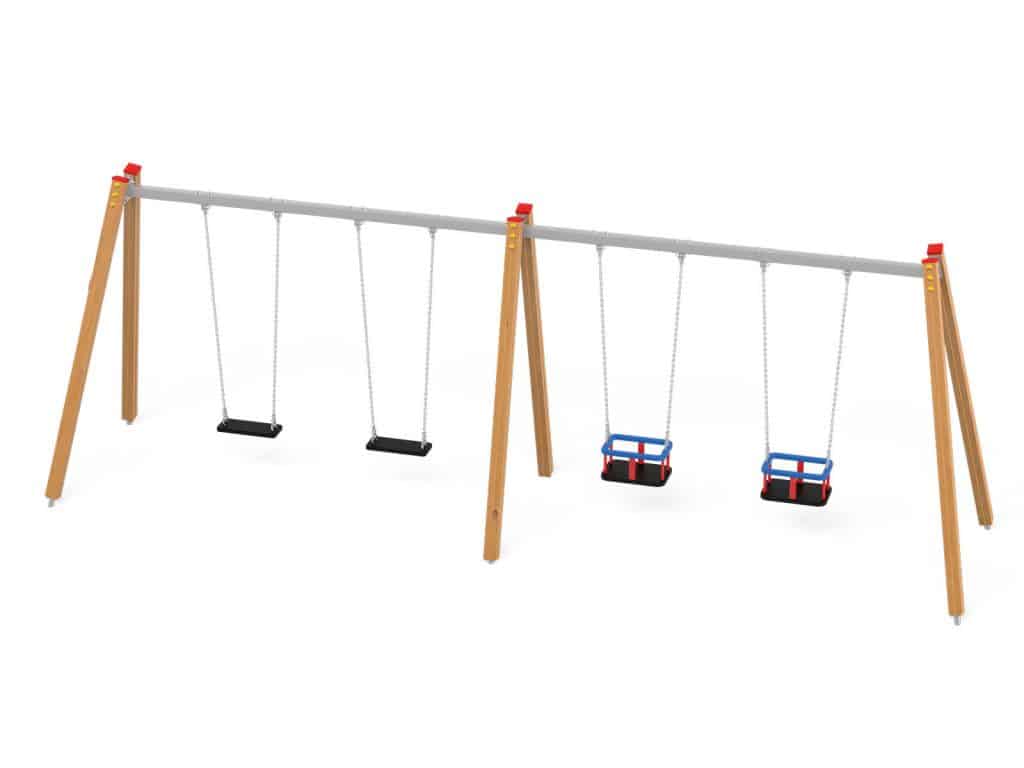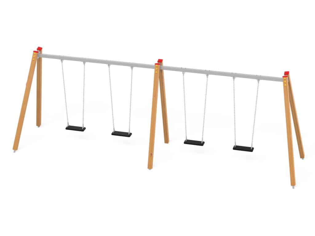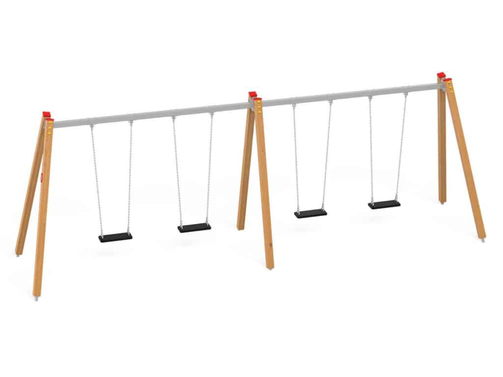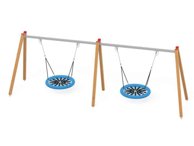 Eine traditionelle Schaukel aus hochwertigsten Materialien, konzipiert für vier Kinder.. Die Sitze können durch einen Korbsitz und einen Korb mit Kettenschloss ersetzt werden. Bei Doppelschaukeln ist es möglich, einen Vogelnestsitz zu installieren.