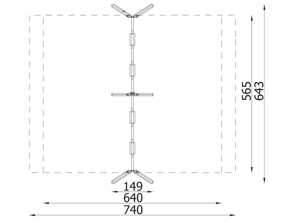 - Geräte-Abmessungen LxBxH: 149 x 643 x 228 cm