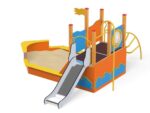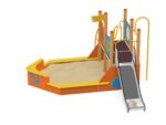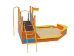 Quadro Schiff mit Sandkasten aus Holz oder Metall für kleine Kinder. Ein großer Sandkasten mit langem und breitem Rand, auf dem Sandburgen aufgestellt werden können, wird sicherlich von den Kleinen belagert. Die Überwindung der Kletterwand ist zweifellos eine Herausforderung für die Kleinsten, aber die Belohnung dafür wird die Möglichkeit sein, auf einer kleinen Rutsche hinunterzurutschen. Das farbenfrohe Set macht jeden Kindergarten- oder Vorschulspielplatz attraktiver.
