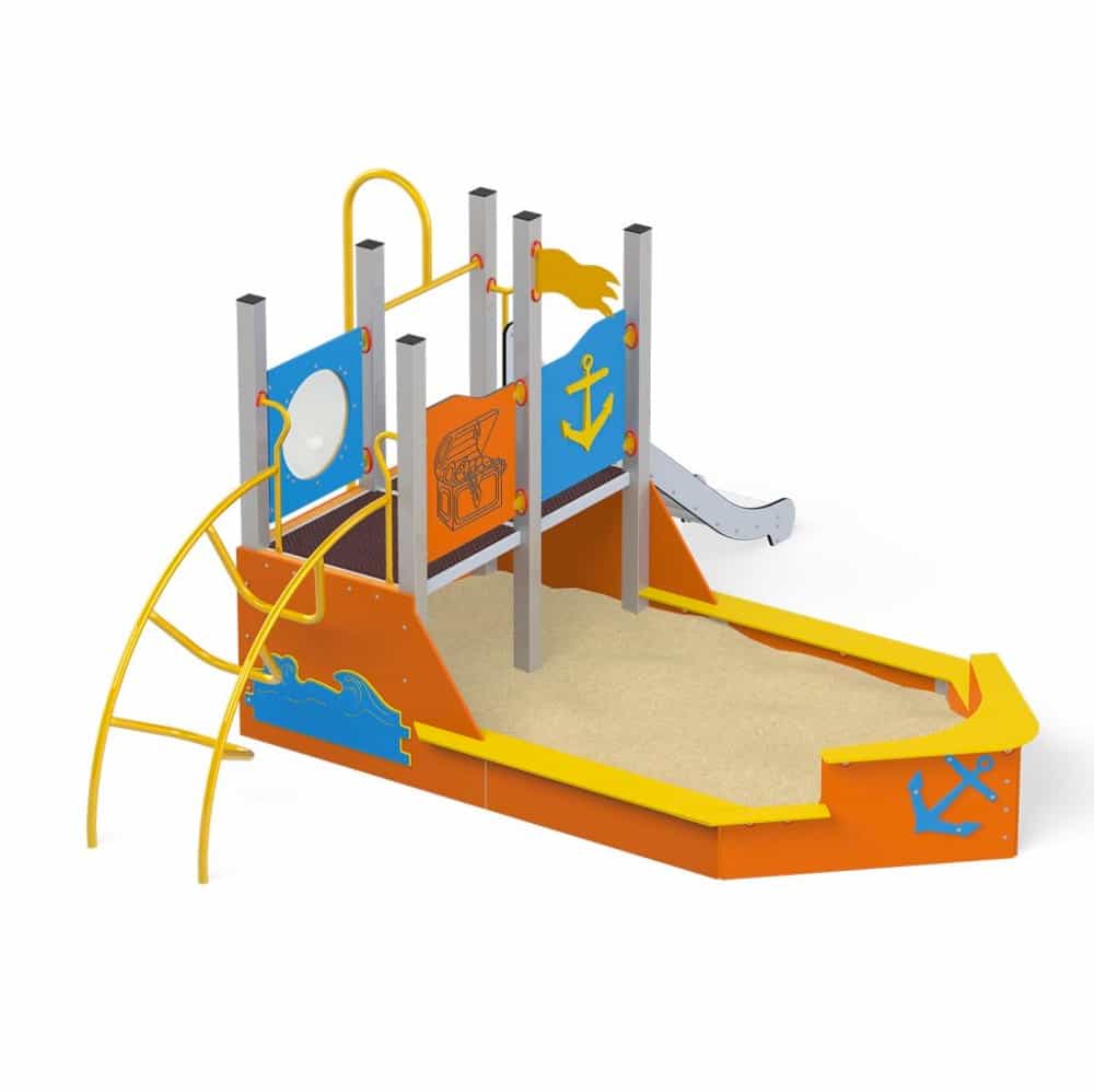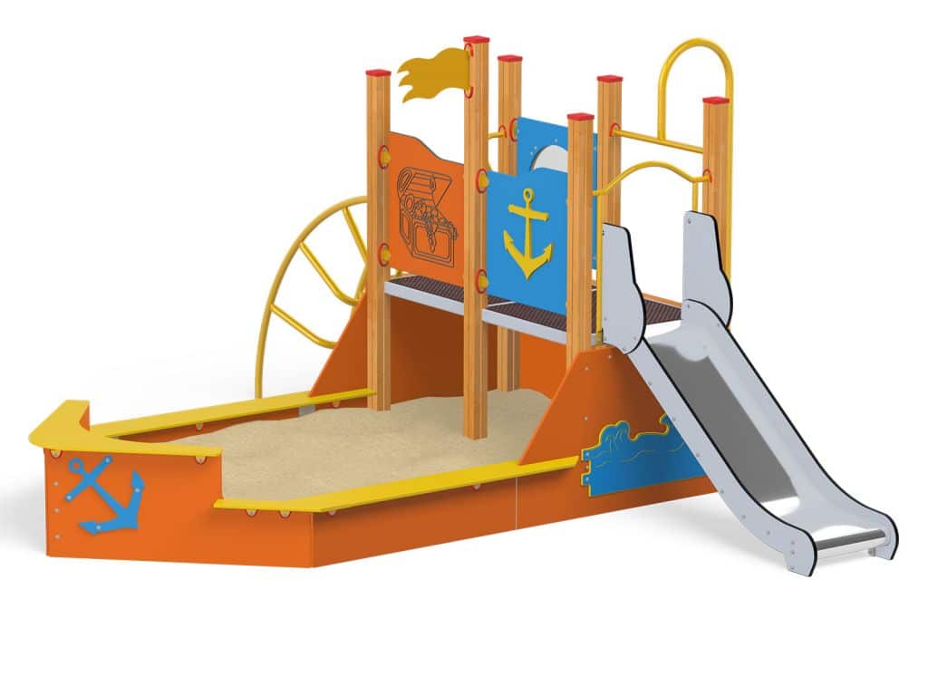 Quadro Schiff mit Sandkasten aus Holz oder Metall von Novum Spielgeräte