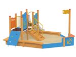 Das Quadro Schiff mit Sandkasten für kleine Kinder. Ein großer Sandkasten mit langem und breitem Rand, auf dem Sandburgen aufgestellt werden können, wird sicherlich von den Kleinen belagert. Die Überwindung der Kletterwand ist zweifellos eine Herausforderung für die Kleinsten, aber die Belohnung dafür wird die Möglichkeit sein, auf einer kleinen Rutsche hinunterzurutschen. Das farbenfrohe Set macht jeden Kindergarten- oder Vorschulspielplatz attraktiver.
