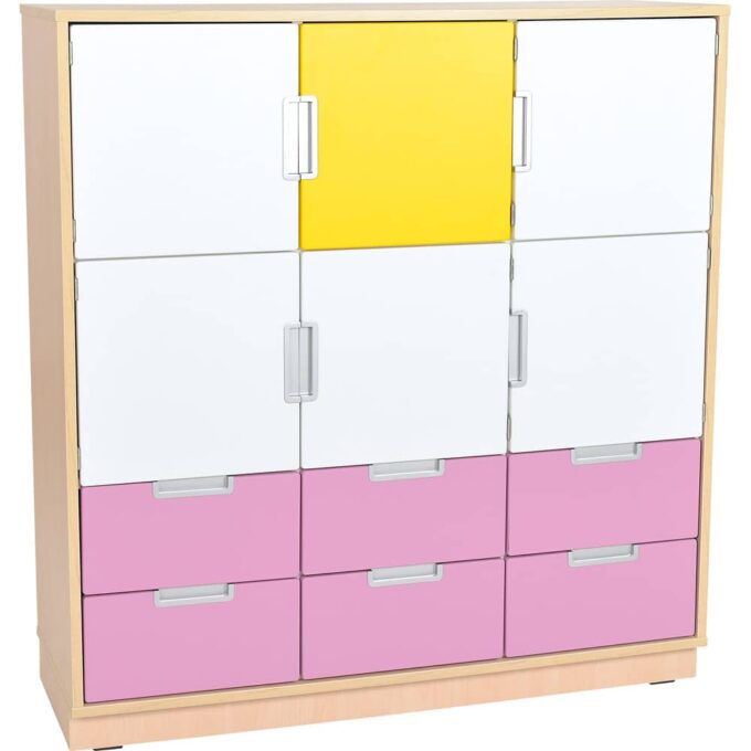 Quadro – Schrank L mit 2 Mittelwänden und 2×3 Einlegeböden – Breite: 116 cm für Kitas & Kindergärten