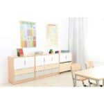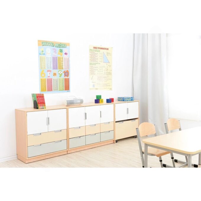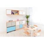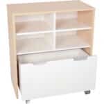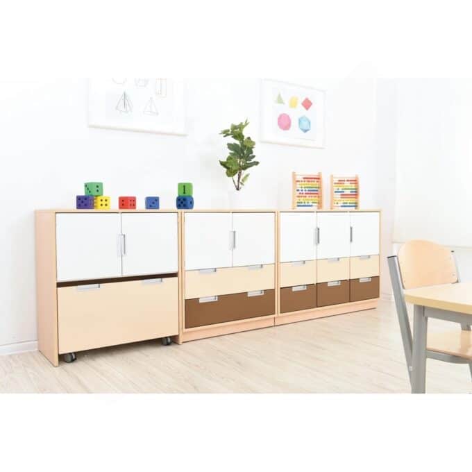 Der Quadro – Schrank M für Rollbehälter bietet eine ebenso kompakte wie flexible Aufbewahrungslösung für jede Umgebung – sei es ein Kinderzimmer, Büro oder eine Bildungseinrichtung. Mit seinem durchdachten Design, das Platz für Rollbehälter kombiniert mit offenen Fächern bietet, verbindet dieser Schrank Funktionalität mit Ästhetik. Er eignet sich ideal, um Ordnung zu schaffen, ohne dabei Kompromisse bei der Gestaltung einzugehen.