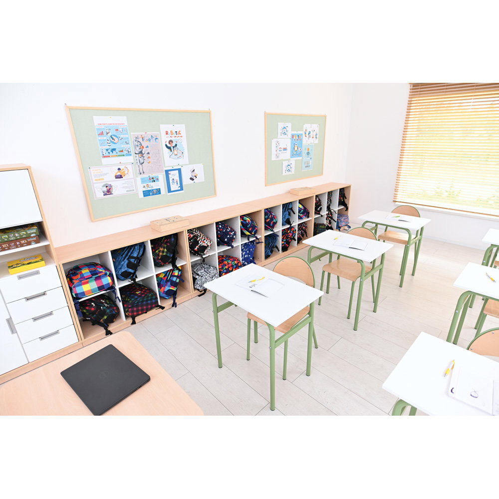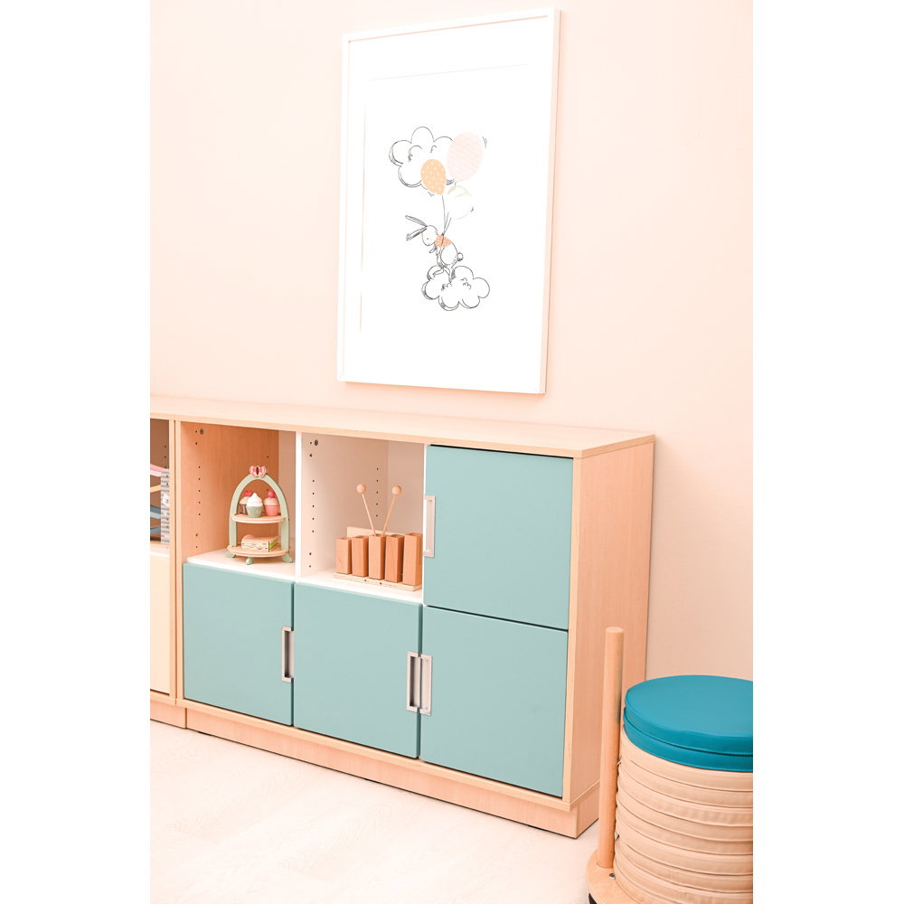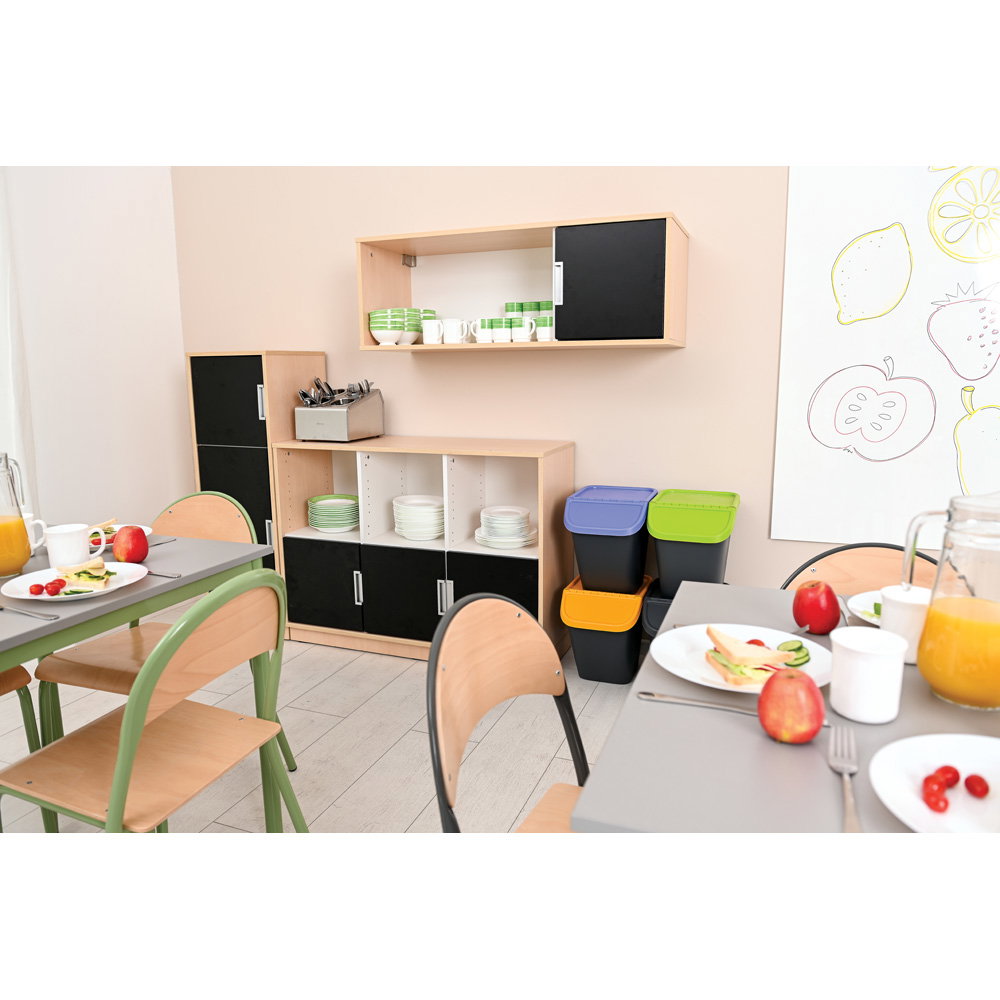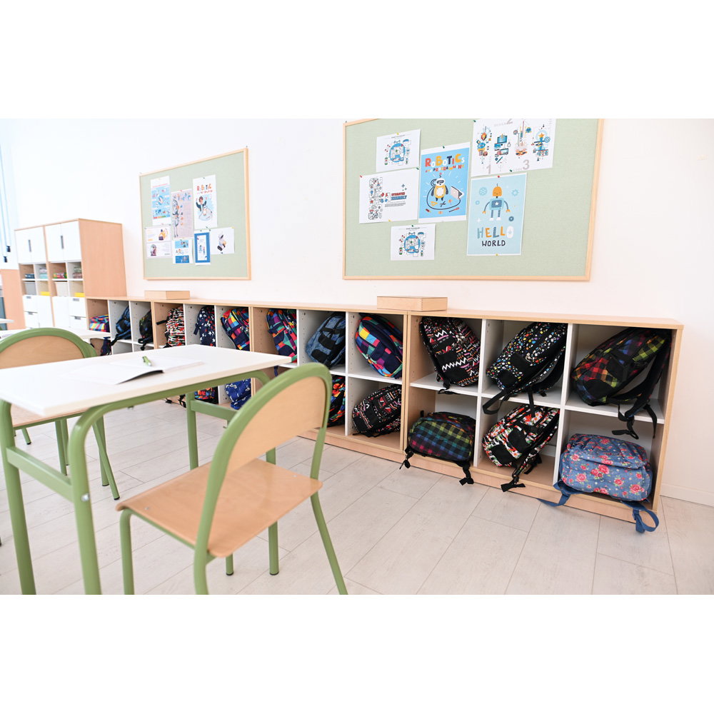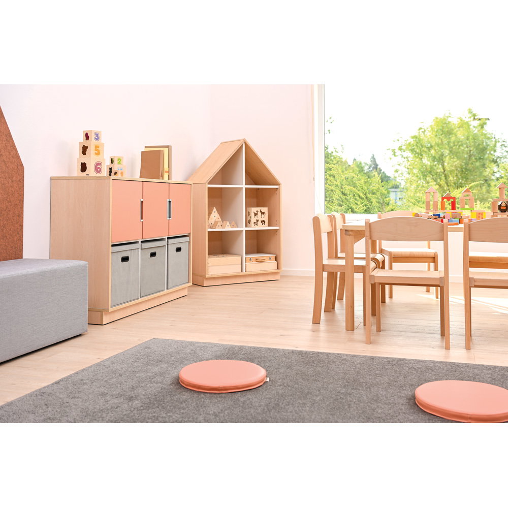 Neben seiner optischen Vielseitigkeit überzeugt der Quadro Schrank M durch eine robuste und langlebige Konstruktion. Der Korpus besteht aus einer 18 mm starken, hochwertig laminierten Spanplatte. Dieses widerstandsfähige Material verleiht dem Schrank genau die Stabilität, die Sie benötigen, um den intensiven Anforderungen in Bildungseinrichtungen oder Büros dauerhaft standzuhalten. Ein 8 cm hoher Sockelbereich sorgt für einen überaus sicheren Stand und schützt den unteren Bereich effektiv vor Schmutz und Stößen. Auch das Thema Hygiene kommt bei diesem Modell nicht zu kurz: Die glatten Oberflächen lassen sich unkompliziert pflegen. Sie können den Schrank problemlos mit schonenden, für Möbeloberflächen geeigneten Präparaten (mit geringer Alkoholkonzentration) hygienisch desinfizieren.