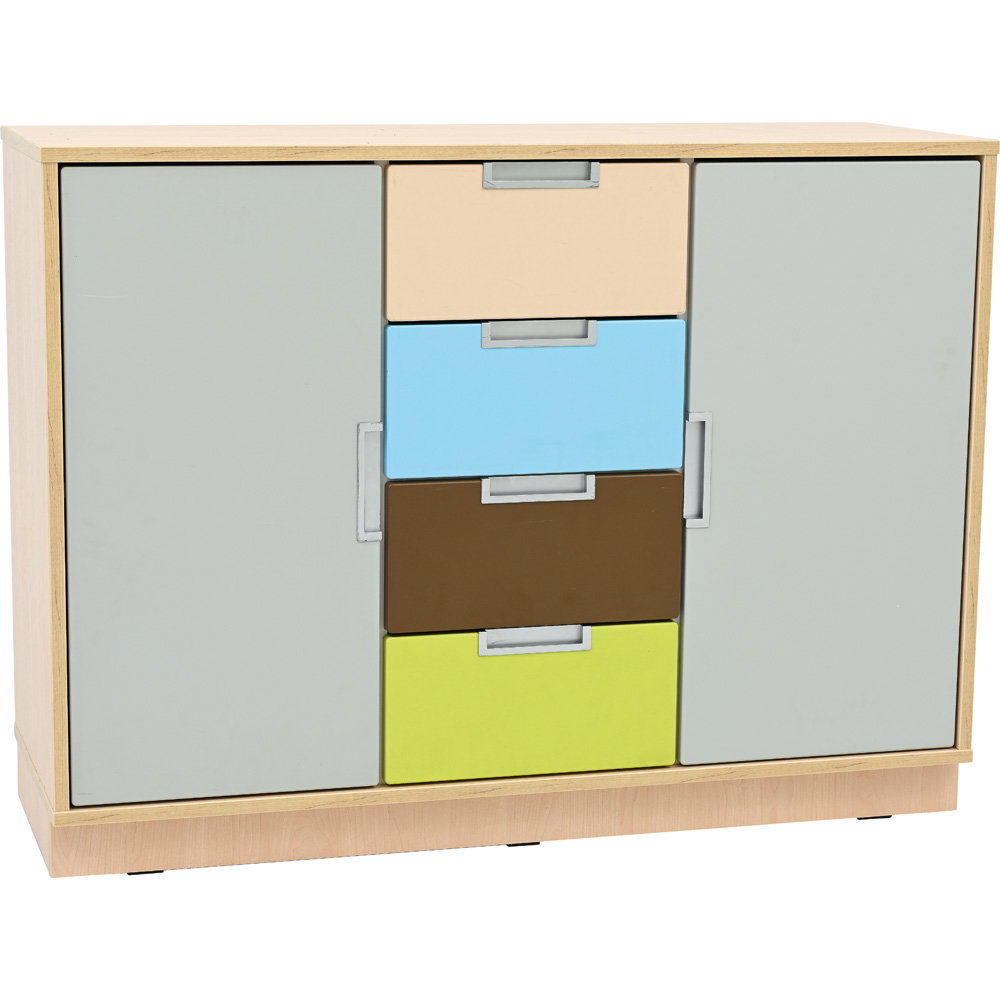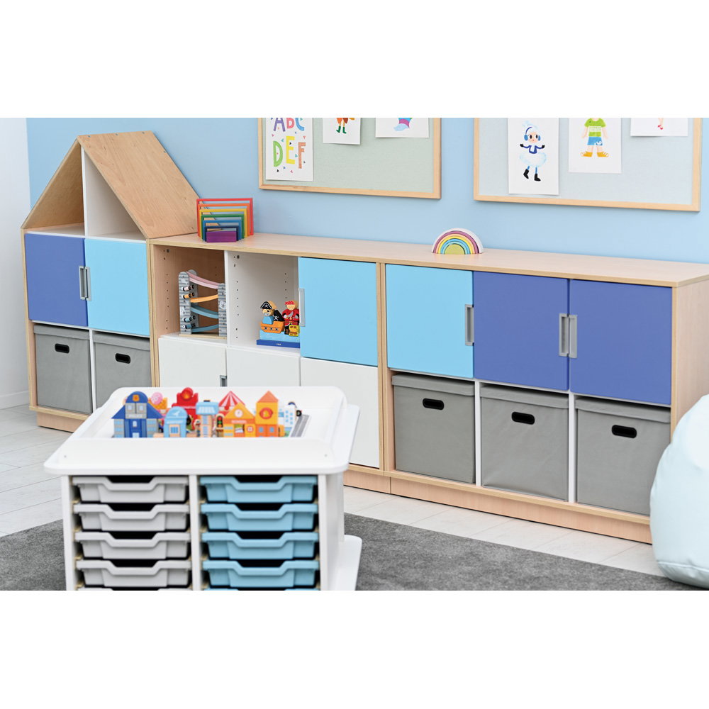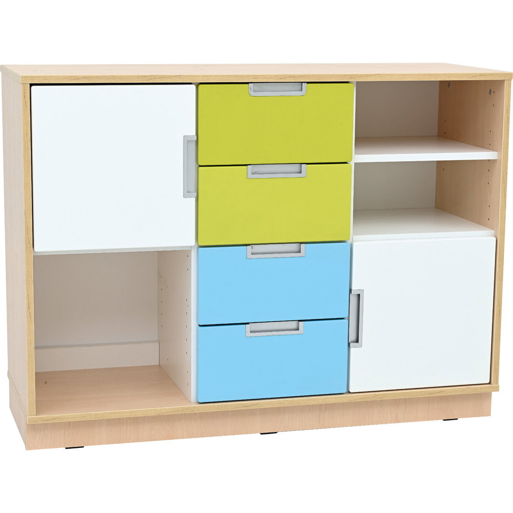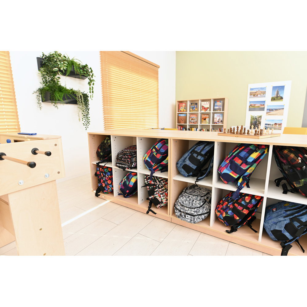 Neben seiner optischen Vielseitigkeit überzeugt der Quadro Schrank M durch eine robuste und langlebige Konstruktion. Der Korpus besteht aus einer 18 mm starken, hochwertig laminierten Spanplatte. Dieses widerstandsfähige Material verleiht dem Schrank genau die Stabilität, die Sie benötigen, um den intensiven Anforderungen in Bildungseinrichtungen oder Büros dauerhaft standzuhalten. Ein 8 cm hoher Sockelbereich sorgt für einen überaus sicheren Stand und schützt den unteren Bereich effektiv vor Schmutz und Stößen. Auch das Thema Hygiene kommt bei diesem Modell nicht zu kurz: Die glatten Oberflächen lassen sich unkompliziert pflegen. Sie können den Schrank problemlos mit schonenden, für Möbeloberflächen geeigneten Präparaten (mit geringer Alkoholkonzentration) hygienisch desinfizieren.