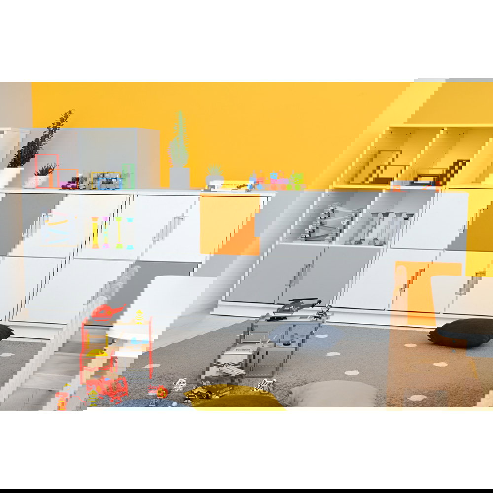 Das Herzstück dieses Schranks ist seine enorme Anpassungsfähigkeit, die Ihnen freie Hand bei der Raumgestaltung lässt. Sie entscheiden selbst, wie Sie den wertvollen Stauraum nutzen möchten. Lassen Sie den Schrank offen, um ihn als klassisches Regal für Bücher, Ordner oder Arbeitsmaterialien zu verwenden. So bleiben wichtige Dinge immer direkt griffbereit. Die großzügige Fachhöhe von 36 cm bietet Ihnen dabei ausreichend Platz, um auch größere Gegenstände bequem unterzubringen. Wenn Sie eine geschlossene, ruhigere Optik bevorzugen, ergänzen Sie den Schrank einfach mit passenden Türen. Das System lässt sich problemlos mit kleinen oder mittelgroßen Türen ausstatten, die Sie ganz bequem separat bestellen können. Auch bei der inneren Aufteilung bleiben Sie absolut flexibel. Die unteren Fächer eignen sich hervorragend für den Einbau von schmalen Schubladen. Hier verstauen Sie kleine Utensilien blickdicht und ordentlich.