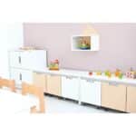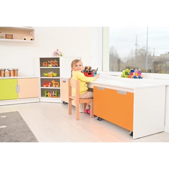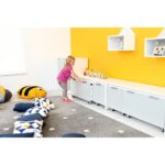 - Aufgeräumte Räume Die intelligente Integration der Behälter sorgt dafür, dass Lernmaterialien, Spielzeug oder andere Gegenstände bequem verstaut und dennoch schnell zugänglich sind.