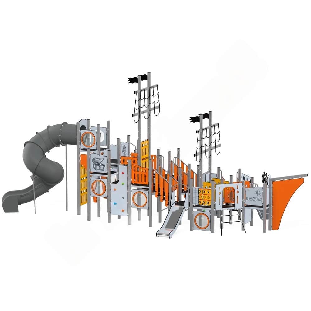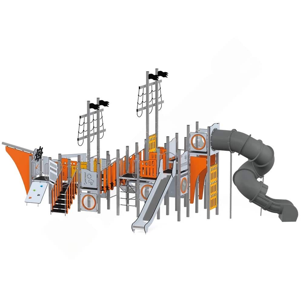 Das Riesenschiff ist mehr als nur ein Spielgerät – es ist ein Abenteuerland! Die niedrigen Podeste und einfachen Treppenaufgänge mit Geländern ermöglichen Sicherheit für die Jüngsten, während hohe Kletterwände und Türme große Herausforderungen für die Älteren bieten. Kinder können sich an verschiedenen Aufgängen (Kletterwände, Kletternetze, Treppen und Leitersprossen) ausprobieren und ihre Fähigkeiten weiterentwickeln.