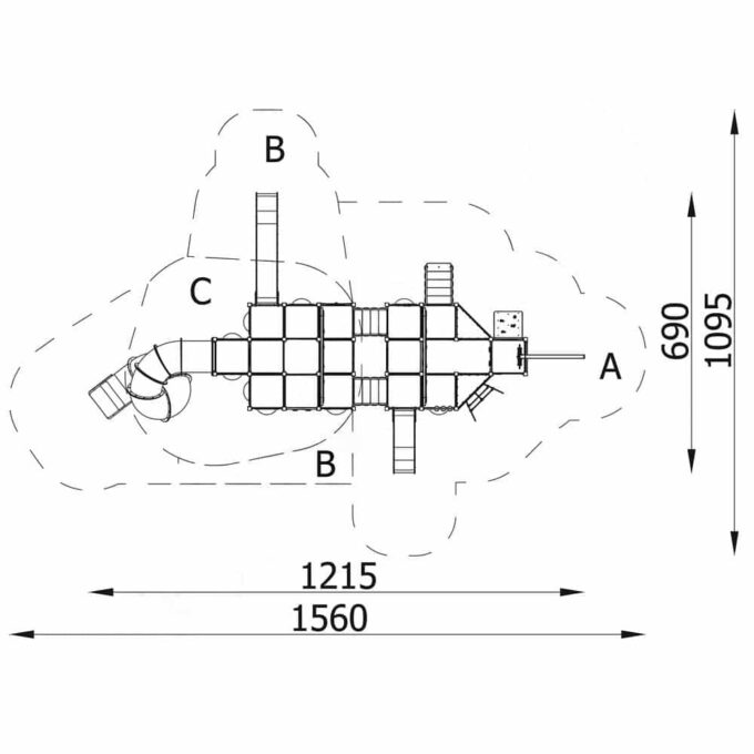 - Sicherheitsbereich: 1095 x 1560 cm (Fläche: 93,5 m²)