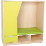 Wenn es im Kindergarten zu turbulent wird, ist ein Rückzugsort gefragt. Dieser Schrank dient nicht nur der Aufbewahrung, die gemütliche Schaumstoffmatte (Stärke: 5 cm) mit pflegeleichtem Kunstlederbezug lädt zum Entspannen ein. Schrank mit einer Schublade und zwei offenen Fächern (passend für Textilboxen 553001-553006 und 553011, separat bestellbar).