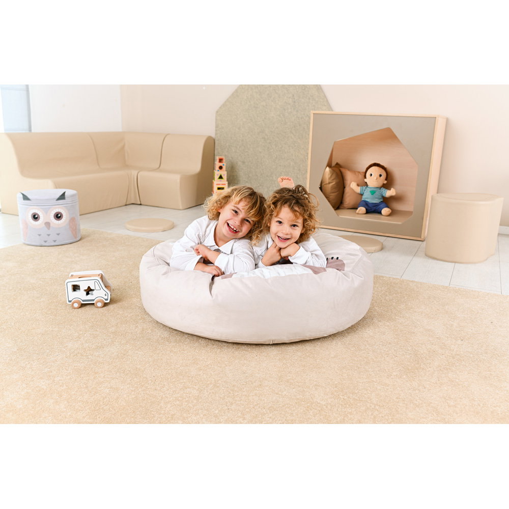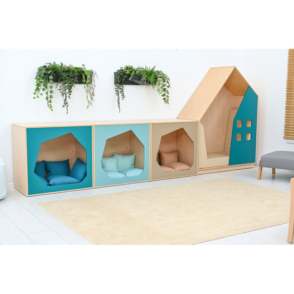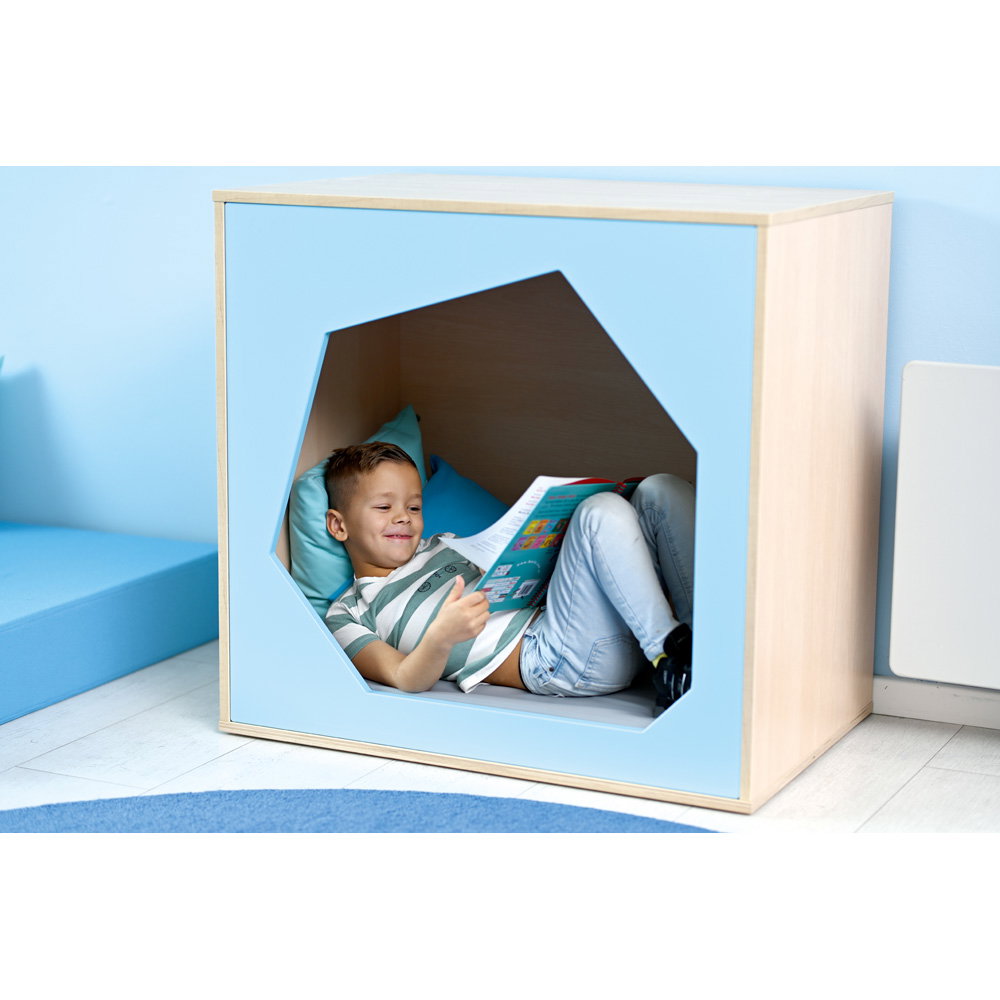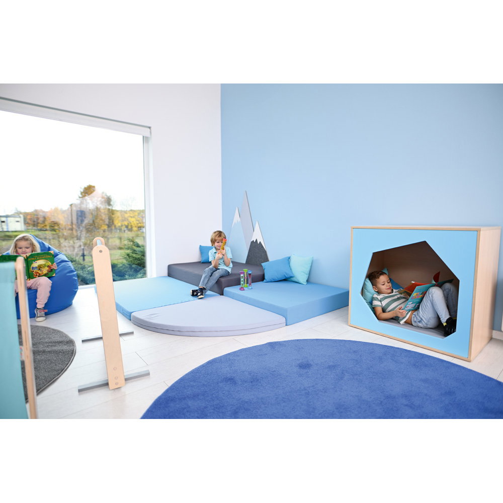 Im oft lauten und belebten Kita-Alltag bietet die Höhle einen geschützten Raum für Ruhe und Entspannung. Hier können Kinder neue Energie tanken und Reize verarbeiten. - Individuell gestaltbar in Farbe und Komfort