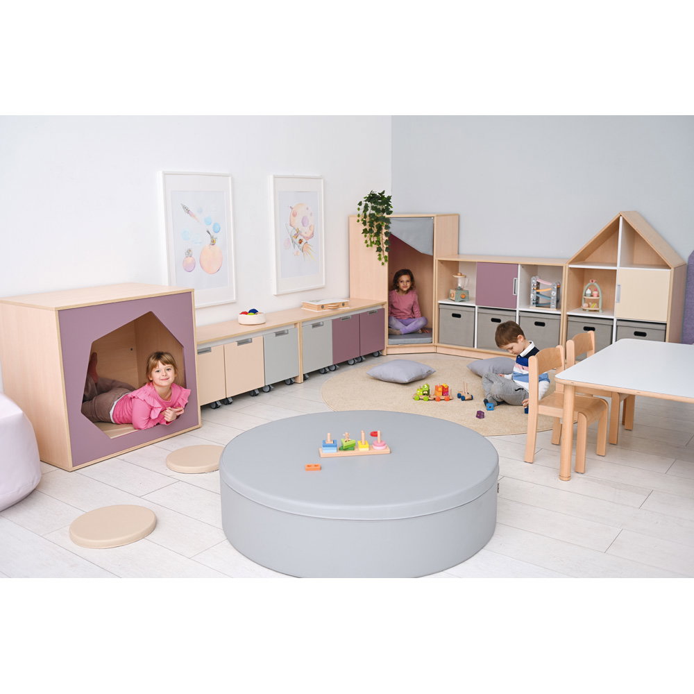 Mit ihrem charakteristischen, runden Eingang weckt diese Höhle sofort die Neugier und den Spieltrieb der Kinder. Das Hindurchkrabbeln und das Gefühl, in einem geschützten Raum zu sein, vermittelt Geborgenheit und Sicherheit. Hier können Kinder zur Ruhe kommen, sich mit einem Freund zurückziehen oder ganz in ihr Spiel eintauchen. Die robuste Konstruktion ist speziell auf die Anforderungen im Kita-Alltag ausgelegt und hält auch wilden Spielen stand.