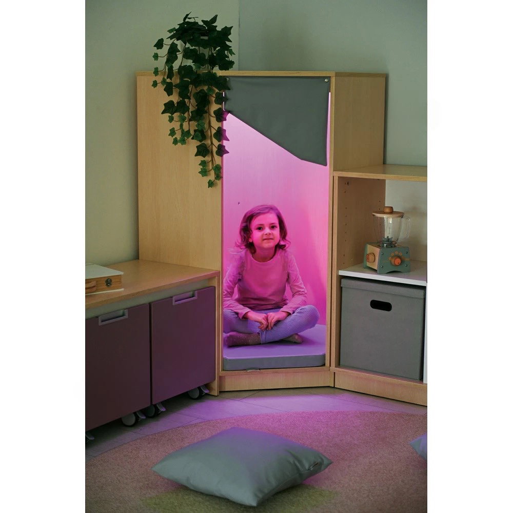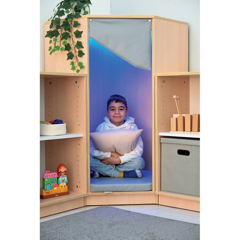 Die Möglichkeit, sich bei Bedarf zurückzuziehen, ist entscheidend für die emotionale Regulation von Kindern. Der Versteckschrank bietet eine sichere Nische, in der sie Reize verarbeiten, ein Buch anschauen oder einfach nur für sich sein können, ohne sich von der Gruppe ausgeschlossen zu fühlen. - Komfortabel und sicher