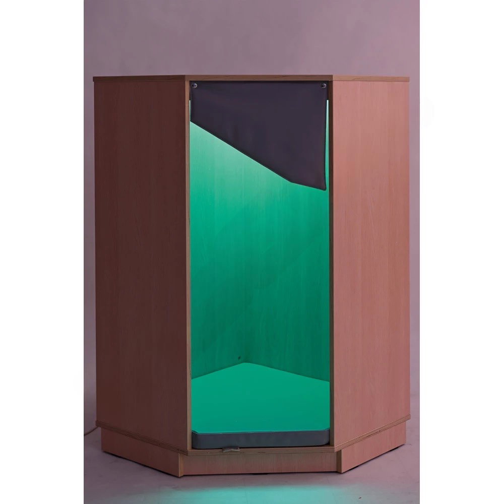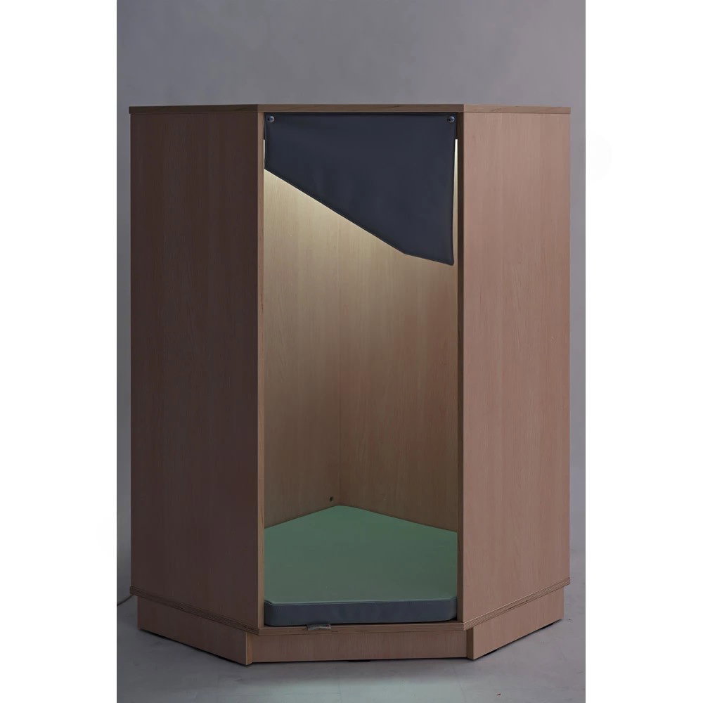 Dieses Möbelstück ist ein wahres Raumwunder. Es bietet nicht nur wertvollen, klar strukturierten Stauraum in einer Schublade und zwei offenen Fächern, sondern schafft gleichzeitig einen vollwertigen Rückzugsort. Diese Effizienz ist ideal für Gruppenräume, in denen jeder Quadratmeter zählt. - Fördert das Wohlbefinden der Kinder