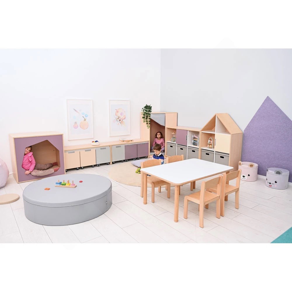 In der dynamischen Umgebung eines Kindergartens sind Momente der Ruhe und des persönlichen Rückzugs für Kinder unerlässlich. Der Quadro – Versteckschrank ist eine geniale 2-in-1-Lösung, die diesen Bedarf auf intelligente Weise erfüllt. Er kombiniert praktischen Stauraum mit einer gemütlichen Nische, die Kindern einen geschützten Raum bietet, wenn der Trubel um sie herum einmal zu groß wird. Dieses multifunktionale Möbelstück ist mehr als nur ein Schrank – es ist eine persönliche Höhle, ein Ort zum Träumen und Entspannen.