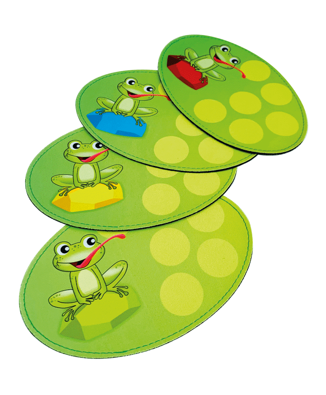 Auf Ihrer eigenen Spielmatte aus Textil und Gummi tummeln sich die flinken magnetischen Frösche, die darauf warten, die bunten Fliegen zu fangen. Die Spieler müssen sich gut merken, wo sich die Fliegen verstecken, während sie gleichzeitig versuchen, so viele wie möglich aufzusammeln. Hier sind sowohl schnelle Reflexe als auch eine gute Merkfähigkeit gefragt!