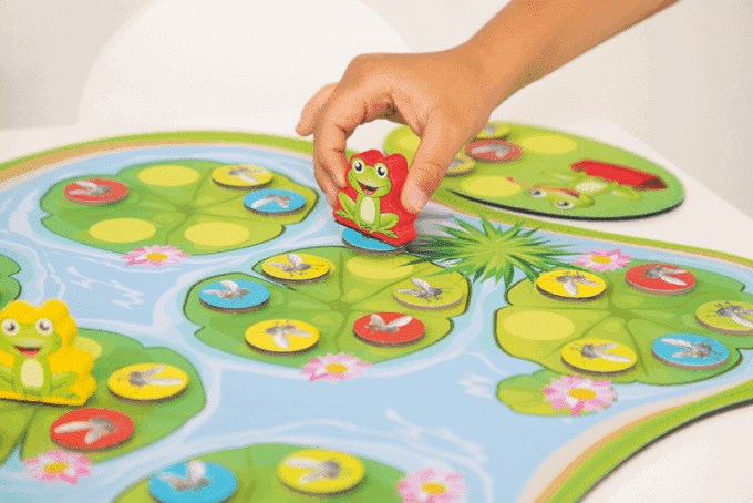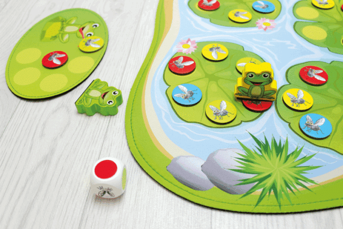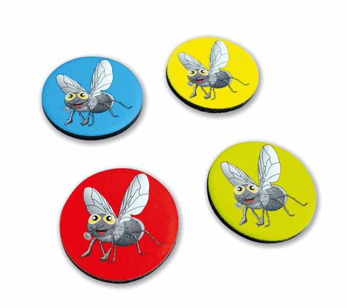 Auf Ihrer eigenen Spielmatte aus Textil und Gummi tummeln sich die flinken magnetischen Frösche, die darauf warten, die bunten Fliegen zu fangen. Die Spieler müssen sich gut merken, wo sich die Fliegen verstecken, während sie gleichzeitig versuchen, so viele wie möglich aufzusammeln. Hier sind sowohl schnelle Reflexe als auch eine gute Merkfähigkeit gefragt!