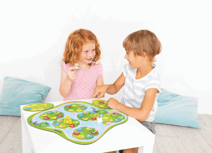 Bereiten Sie sich auf ein spritziges Abenteuer auf dem Seerosenteich mit Quaki! Dieses spannende Spiel bringt Kinder ab 3 Jahren dazu, ihre Merkfähigkeit und Farberkennung spielerisch zu schulen. Wer wird die meisten magnetischen Fliegen schnappen und als Erster seine Frosch-Spielmatte vollständig belegen?
