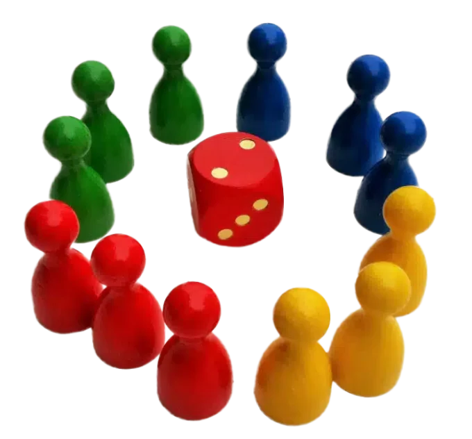 - 12 Spielfiguren (4 verschiedene Farben, je 3 Stück)