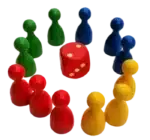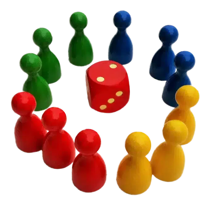 - 12 Spielfiguren (4 verschiedene Farben, je 3 Stück)