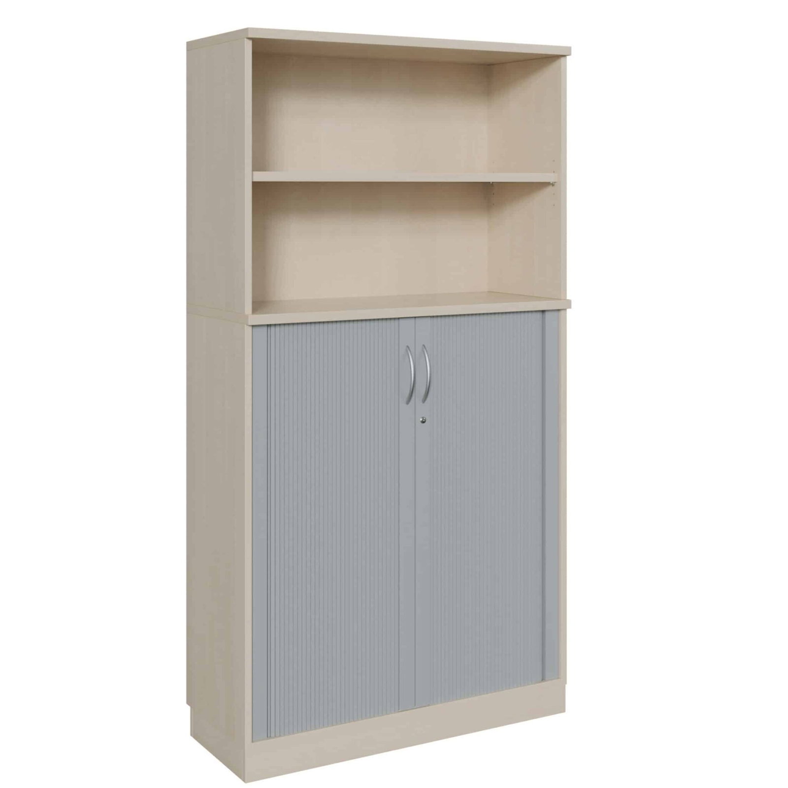 - Individuelle Gestaltungsmöglichkeiten: Passen Sie den Schrank an Ihr Bürodesign an. Wählen Sie für die Rolllade zwischen den Farben Buche, Grau oder Aluminium und schaffen Sie ein Möbelstück, das sich harmonisch in Ihr Gesamtkonzept einfügt.
