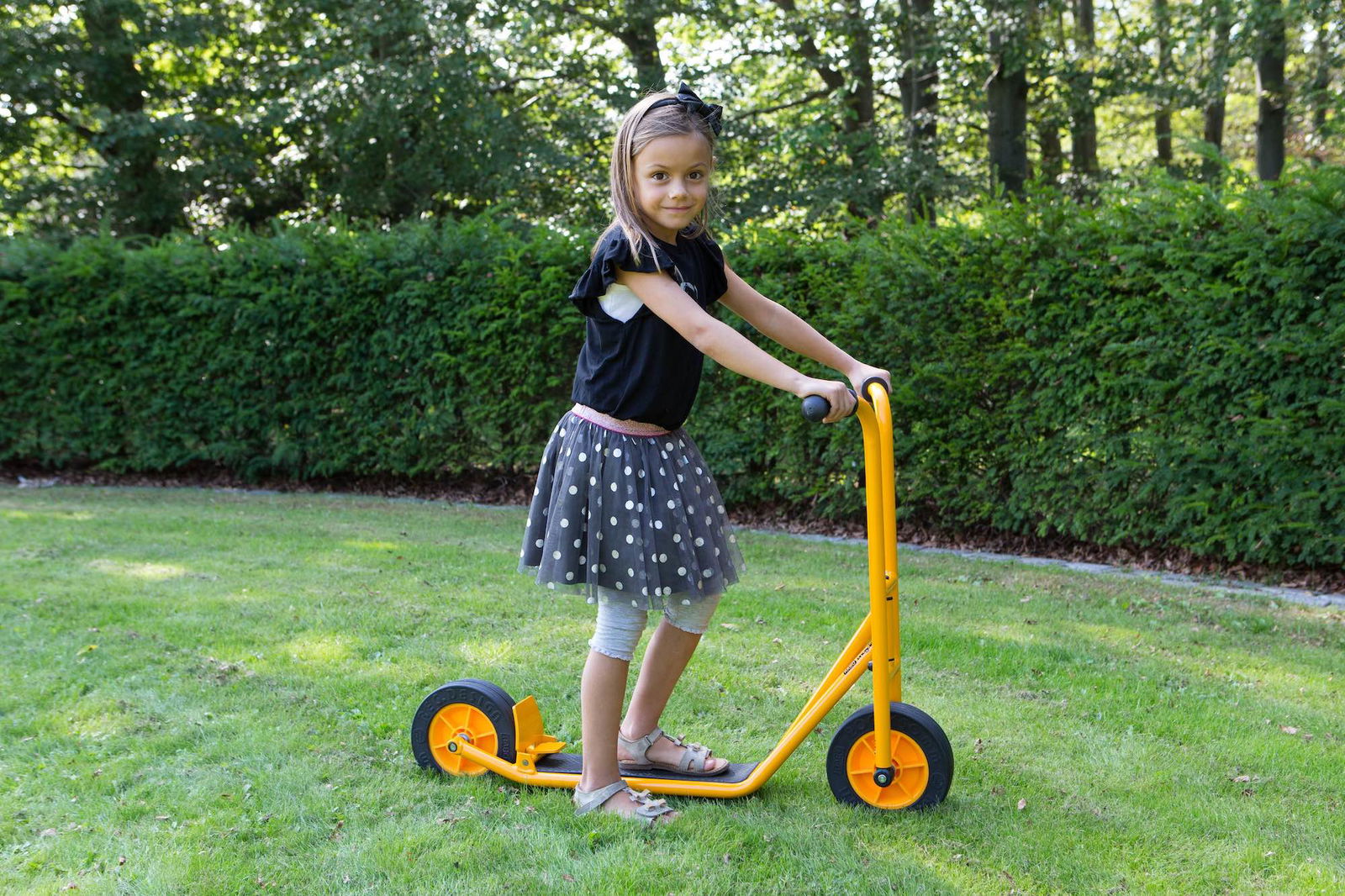 Der RABO Roller ist ein Synonym für Bewegungsfreiheit und Fahrspaß, angepasst an die Bedürfnisse junger Piloten! Geschwindigkeit und Balancetraining gehen bei diesem Roller Hand in Hand mit aktiver Bewegung und stärken das Selbstvertrauen. Mit seinen breiten und stabilen Rädern bietet der RABO Roller uneingeschränktes Vergnügen – auch abseits gepflasterter Wege. Loser Schotter? Kein Problem! Die dynamische Hinterbremse garantiert eine schnelle Reaktion und sichere Stopps. Dank der rutschfesten Gummioberfläche fühlt sich jedes Kind sicher und kann die Fahrt in vollen Zügen genießen.
