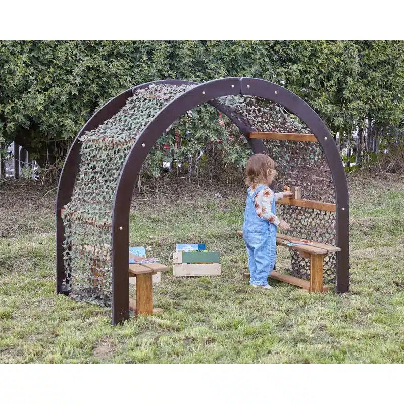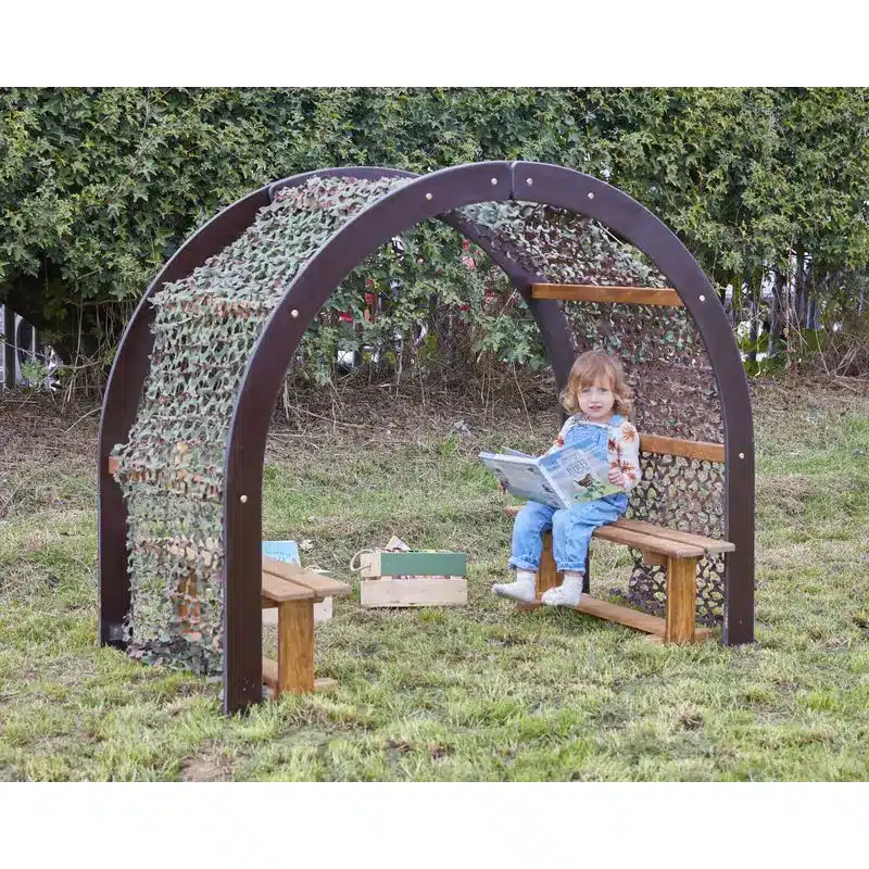 Robuster Outdoor-Torbogen aus Holz für Kitas. Schafft flexible Spiel- & Lernzonen, fördert Kreativität & das Spiel im Freien. Ideal als Höhle oder Lese-Ecke.