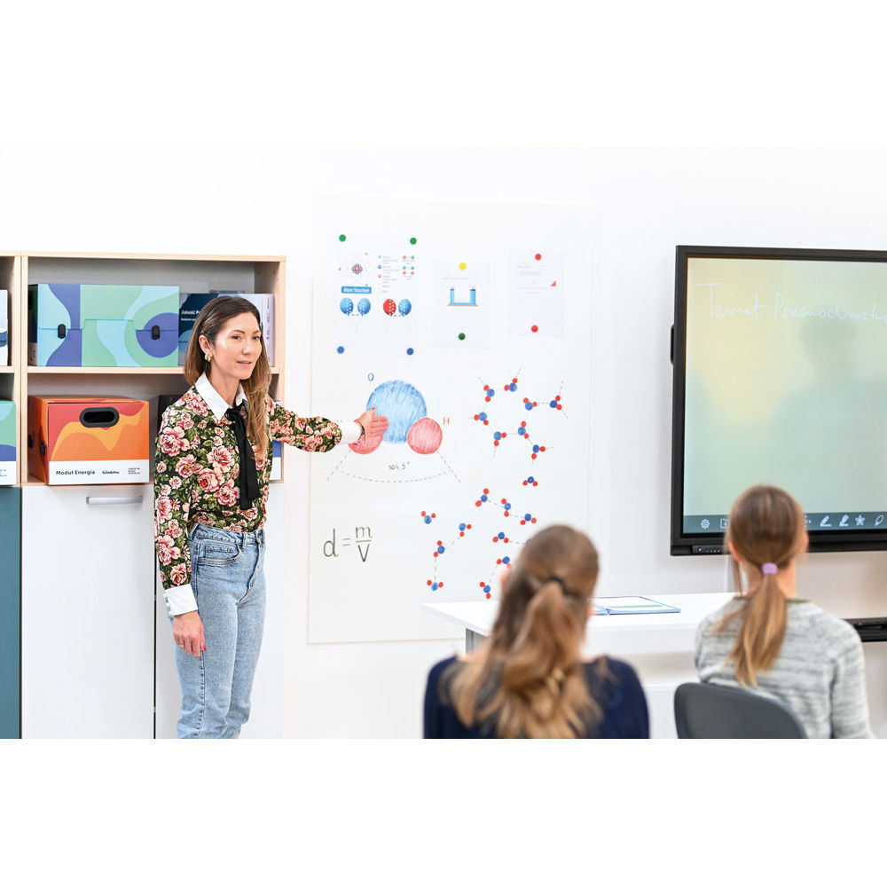 Mit einer Stärke von nur 10 mm und dem intelligenten, unsichtbaren Montagesystem scheint die Tafel an der Wand zu schweben. Dieser elegante Effekt verleiht jedem Raum eine moderne und aufgeräumte Ästhetik und lenkt den Fokus vollständig auf den Inhalt. - Maximale Flexibilität bei der Montage