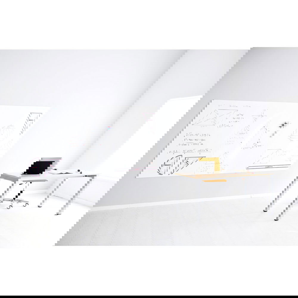 Ob Sie eine hohe, schmale Tafel für eine Säule benötigen oder eine breite Landschaftsansicht für Ihren Konferenzraum – kein Problem. Jede Tafel kann flexibel im Hoch- oder Querformat montiert werden. Die Möglichkeit, auch über Eck zu installieren, erschließt zudem völlig neue Planungsoptionen. - Duale Funktionalität: Schreiben und Anheften