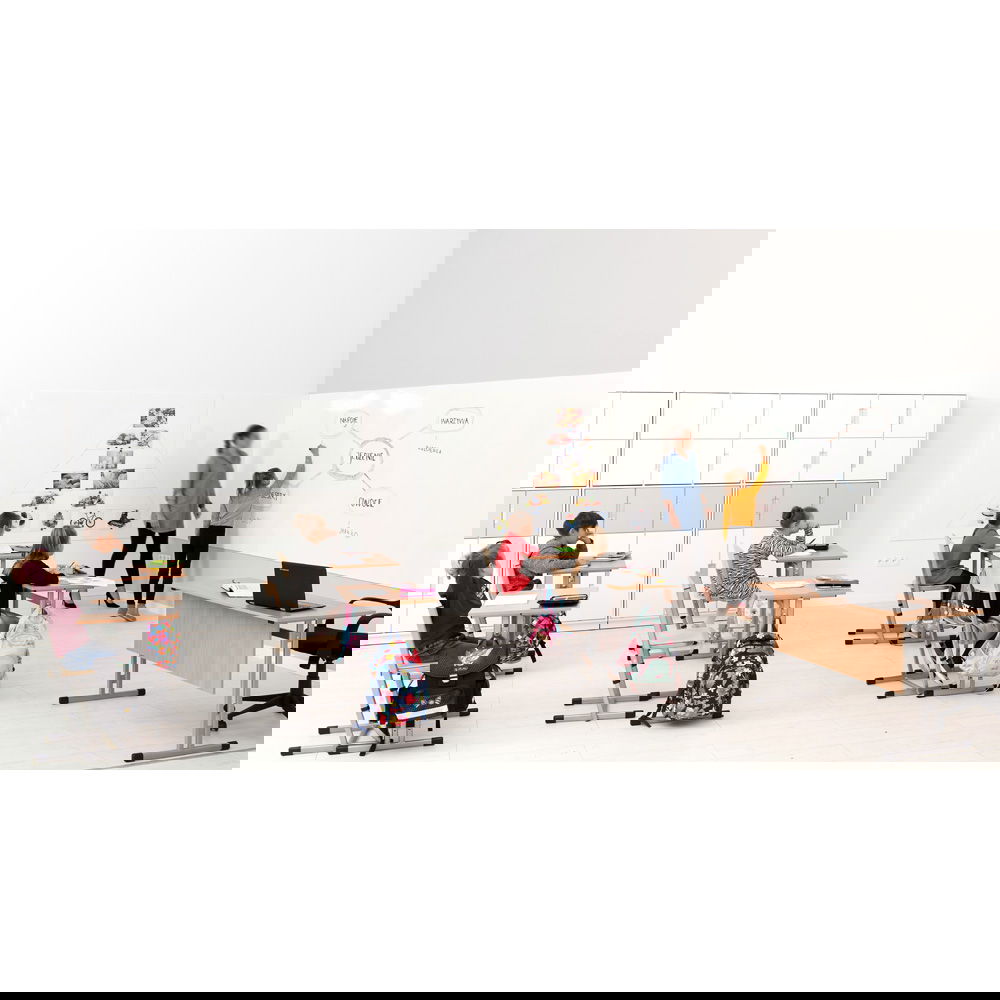 Mit ihrer minimalistischen Tiefe von nur 10 mm und der vollständig verdeckten Aufhängung verschmilzt die Magnettafel förmlich mit Ihrer Wand. Das rahmenlose Design ist nicht nur ein ästhetisches Statement, es ist vor allem funktional: Mehrere Tafeln können lückenlos aneinandergereiht werden – horizontal, vertikal und sogar über Eck. So entstehen riesige, zusammenhängende Flächen für Brainstorming-Sessions, Projektplanung oder als kreative Leinwand in Agenturen und Schulen. Erhältlich in klassischem Weiß oder den kräftigen Akzentfarben Grün und Blau, wird die Tafel selbst zum Designelement, das jeden Raum aufwertet.