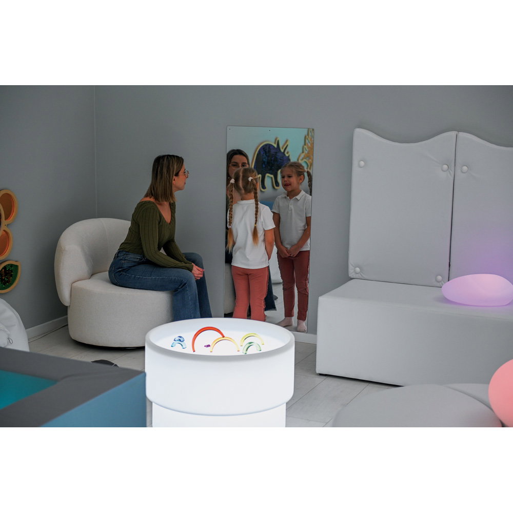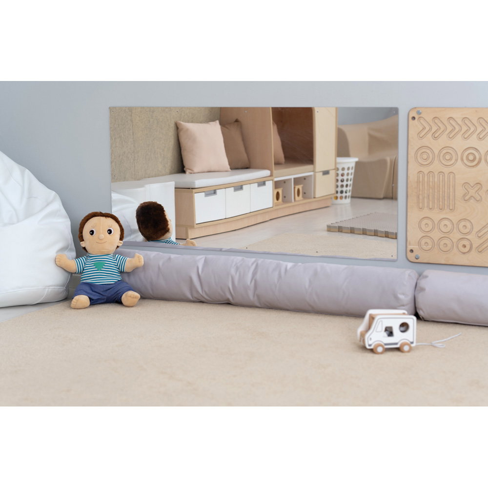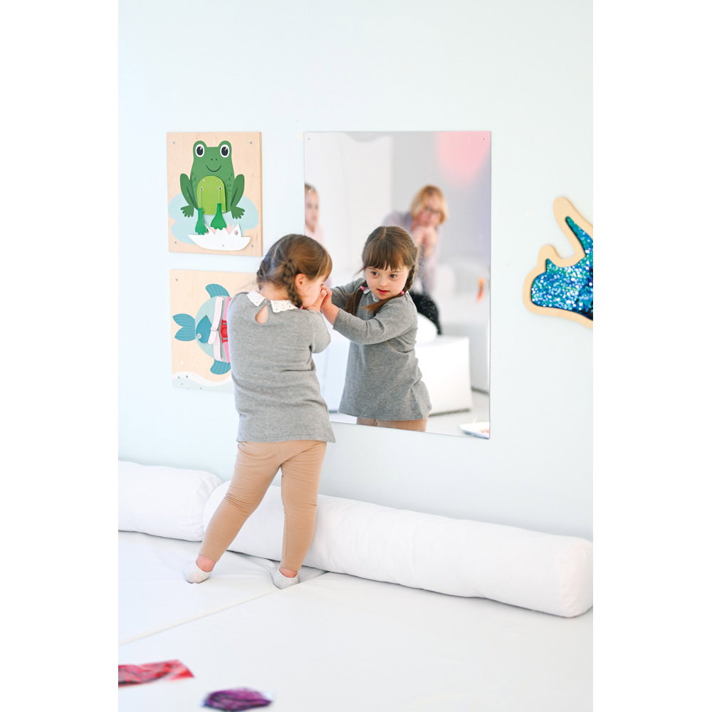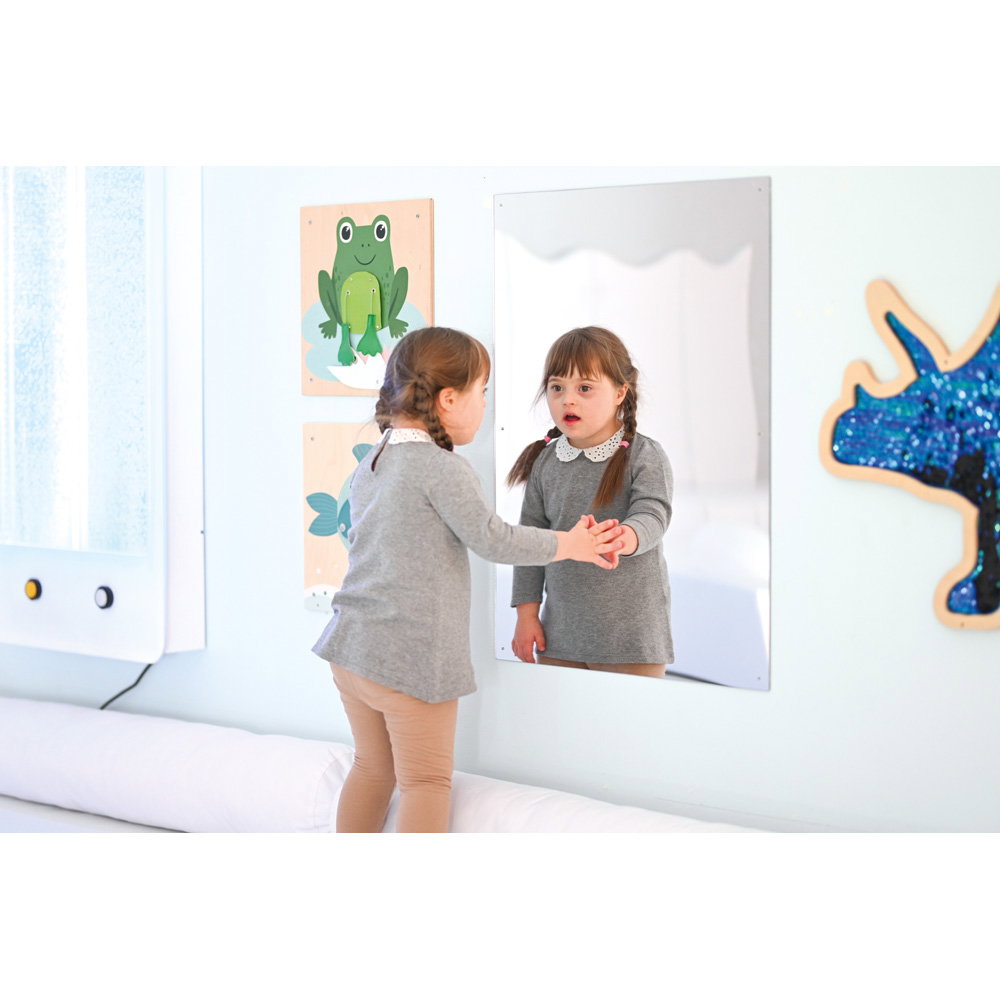 Ob im Sinnesraum, im Flur der Kita, im Therapiezimmer oder im Wickelbereich – der Spiegel ist universell einsetzbar. Er unterstützt nicht nur therapeutische Ansätze, sondern fördert auch soziale Interaktionen, wenn Kinder gemeinsam vor dem Spiegel agieren, Grimassen schneiden oder Rollenspiele üben. - Einfache Montage und Pflege