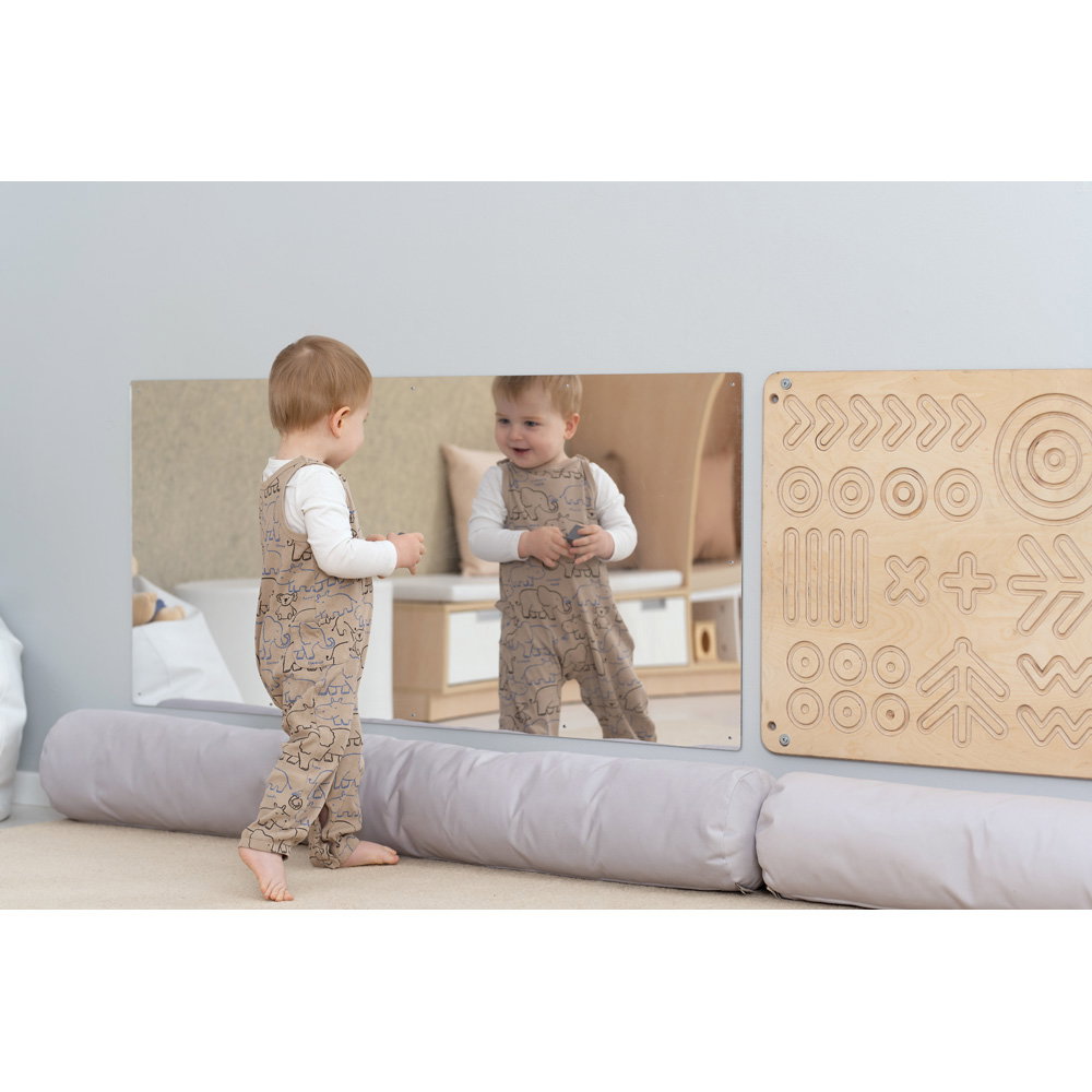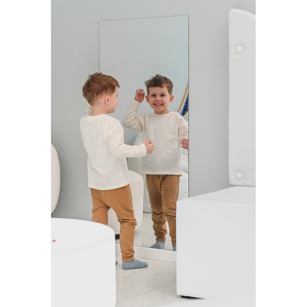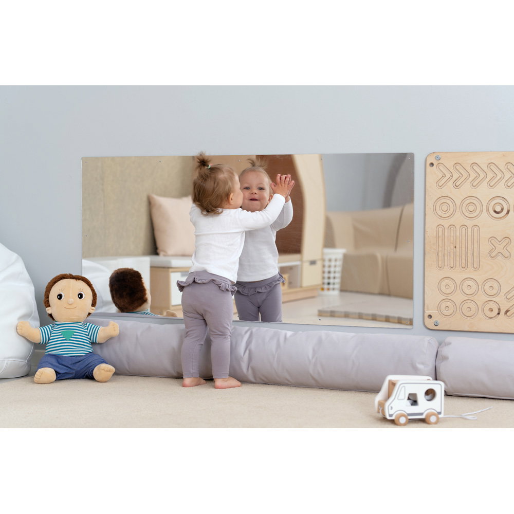 In Einrichtungen mit Kindern steht Sicherheit an erster Stelle. Herkömmliche Glasspiegel bergen ein hohes Verletzungsrisiko bei Bruch. Dieser Spiegel besteht aus hochwertigem, bruchsicherem Acrylglas. Es ist leicht, widerstandsfähig und splittert nicht, sodass Kinder unbeschwert davor spielen und üben können. - Förderung von Selbstwahrnehmung und Koordination