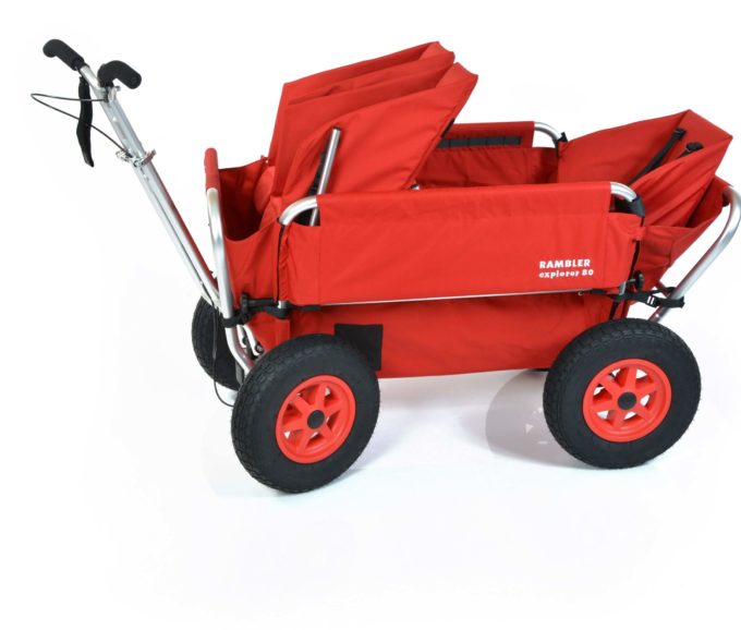 Der große Vorteil der Rambler Bollerwagen auch bekannt unter dem Namen Walking Wagon ist, dass Sie sich komplett individuell erweitern lassen und Sie durch Kindersitze, Babysitze in unterschiedlichsten Konstellationen komplett individuelle Lösungen für Ihre speziellen Bedürfnisse ergeben. Im Standard erhalten Sie den Rambler Explorer 80 mit den komfortablen Sitzbänken auf denen auf jeder Seite bequem 3 Kinder Platz finden.