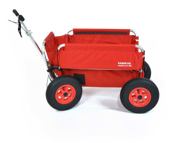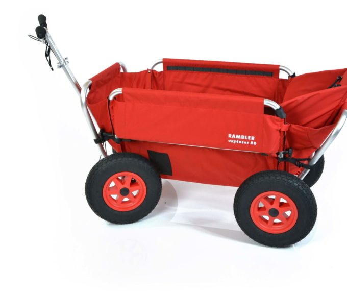 Der beliebteste Bollerwagen in der Rambler Explorer Familie für Tagesmütter und Erzieher. Ein perfekter Krippenwagen für Aktivitäten und Ausflüge im Freien. Der Rambler Explorer 80 Rot erfreut sich immer mehr an Beliebtheit. Im Gegensatz zum Explorer 65 bietet dieser Bollerwagen vor allem mehr Platz. Mit einer Länge von 120 cm und einer Sitzbanklänge von 80 cm können jetzt bequem bis zu 6 Kinder im Alter ab ca. 2 Jahren transportiert werden. Übriger Platz kann als Stauraum für Gepäck und Proviant benutzt werden. Für Eltern und Tagesmütter das am meisten verkaufte Modell.