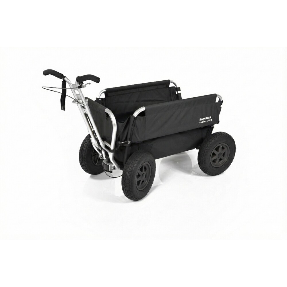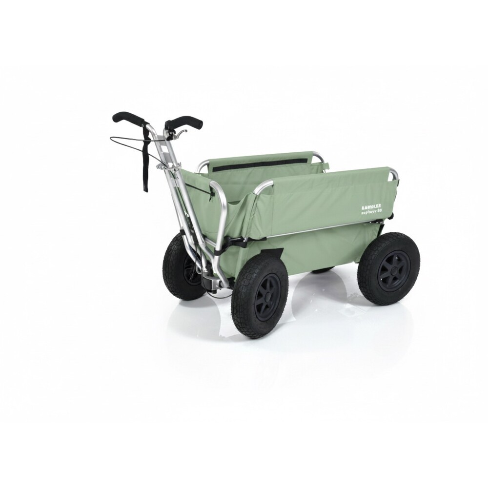Der Rambler Explorer ist also perfekt für den Transport und Ausflüge mit Kleinkindern aber auch für etwas größere Kinder geeignet. Eine perfekte Ergänzung sind die Rambler Schiebestangen, denn somit kann vorne eine Person den Wagen ziehen und von hinten kann zur Unterstützung bei steilen Bergen geschoben werden. Dann können Sie ohne größere Anstrengung zu zweit Berge oder Erhöhungen mit dem Rambler Explorer 80 erklimmen.