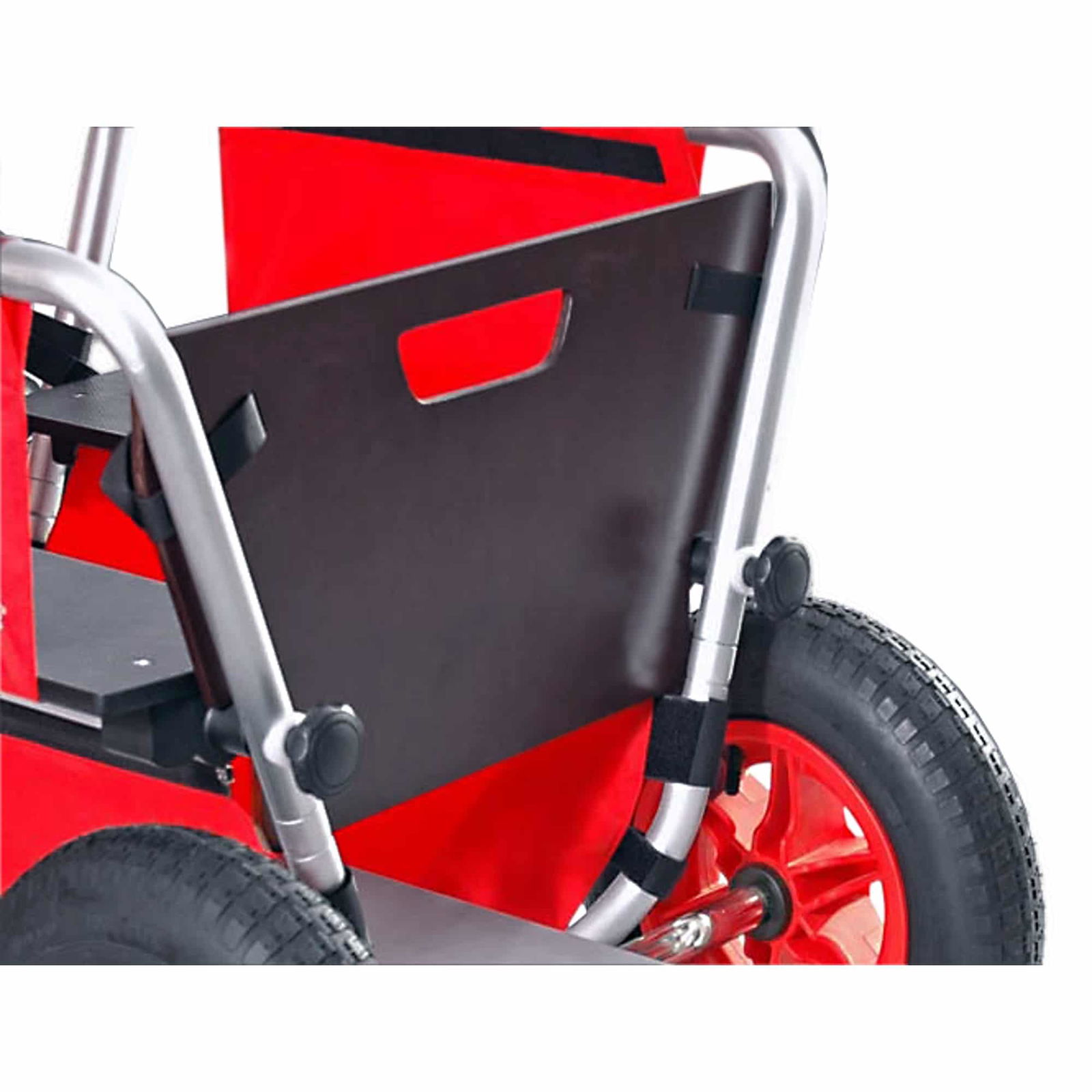 Mit der Rückwand wird die Rückseite des Ramblers ganz schnell geschlossen, so dass die Kinder während der Fahrt nicht unkontrolliert ein- oder aussteigen können. Kleine, die schon „groß“ sind und selbstständig auf den Bänken sitzen können, erhalten eine zusätzliche Stütze durch die Rückwand.