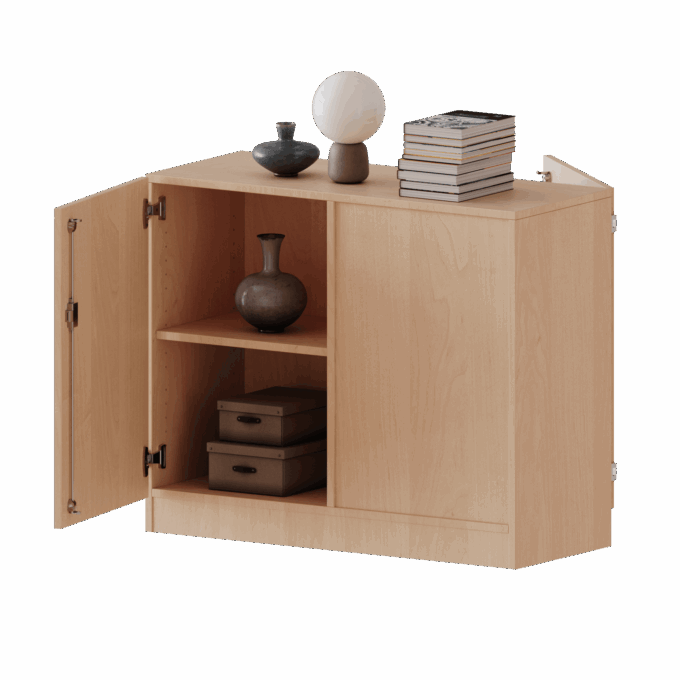 - Beidseitig clever nutzbar: Das geniale Design mit wechselseitig angeordneten Türen ermöglicht den Zugriff von beiden Seiten. So können sich zwei Kinder, Kollegen oder Teams ein Lowboard teilen und haben dennoch ihren eigenen, separat abschließbaren Stauraum.