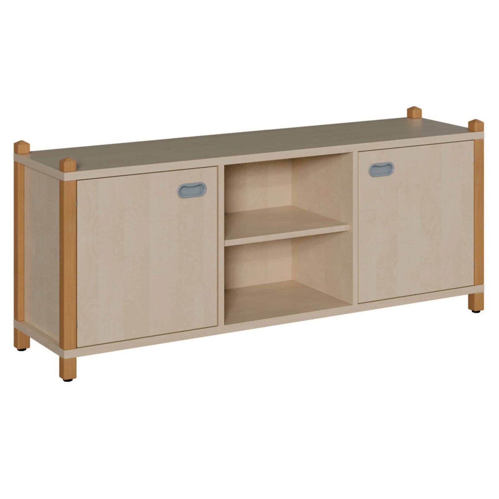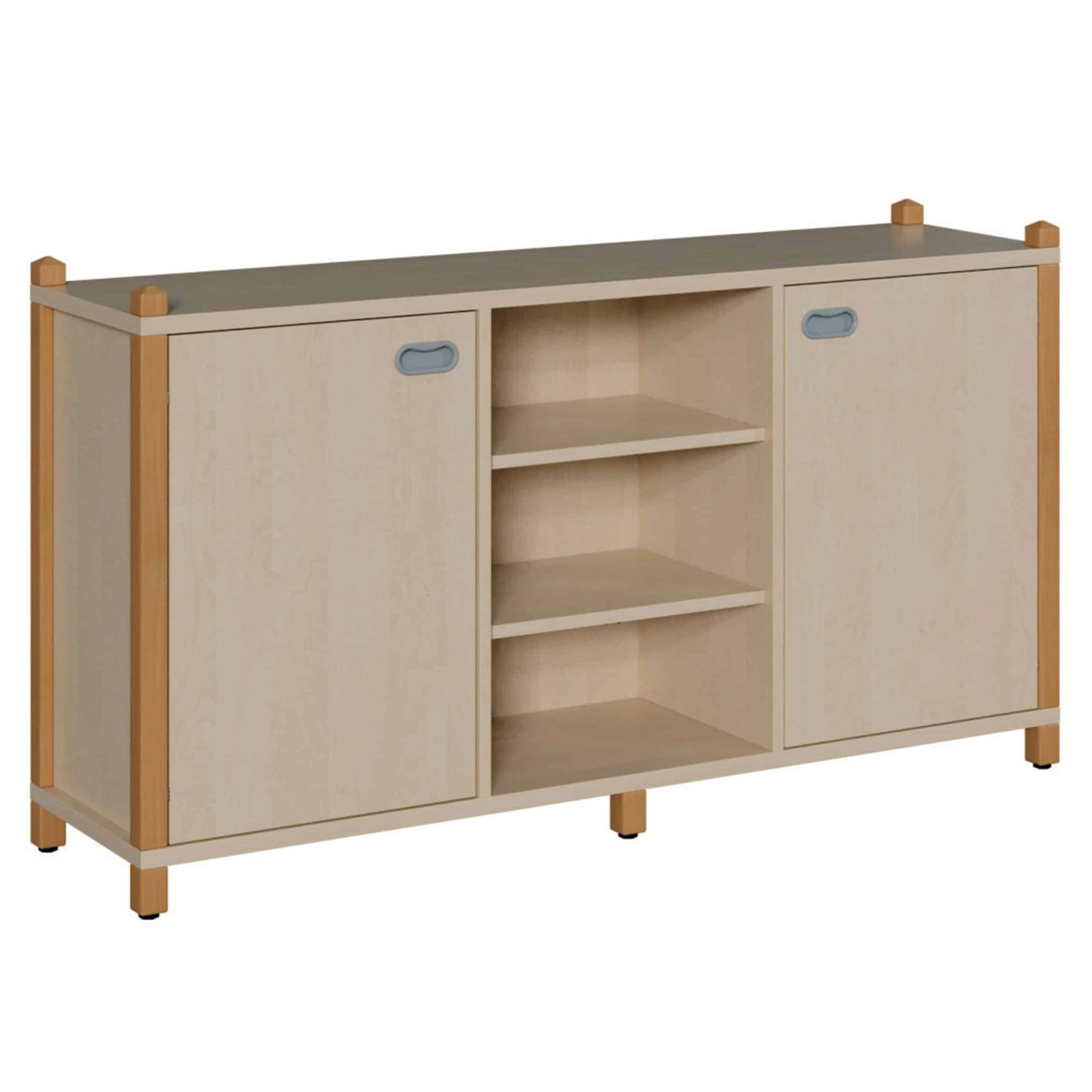 - Massive Stollenbauweise aus Buchenholz: Das Fundament des Schranks bilden massive Stollen, Füße und Abschlusselemente aus robustem Buchenholz. Diese Konstruktion garantiert eine herausragende Stabilität und ist speziell für die hohe Beanspruchung im pädagogischen Umfeld ausgelegt.
