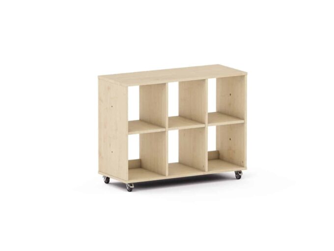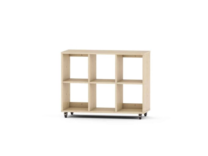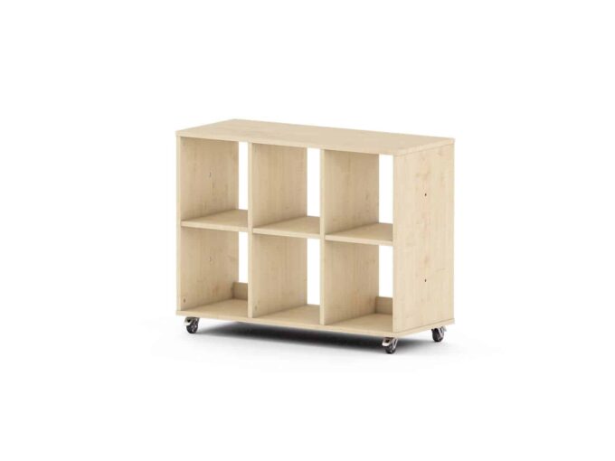 - Stabiler und sicherer Stand: Egal ob auf den stabilen Beinen oder den feststellbaren Rollen montiert, das Regal bietet jederzeit einen sicheren Stand, der den hohen Belastungen im Kita-Alltag gewachsen ist.