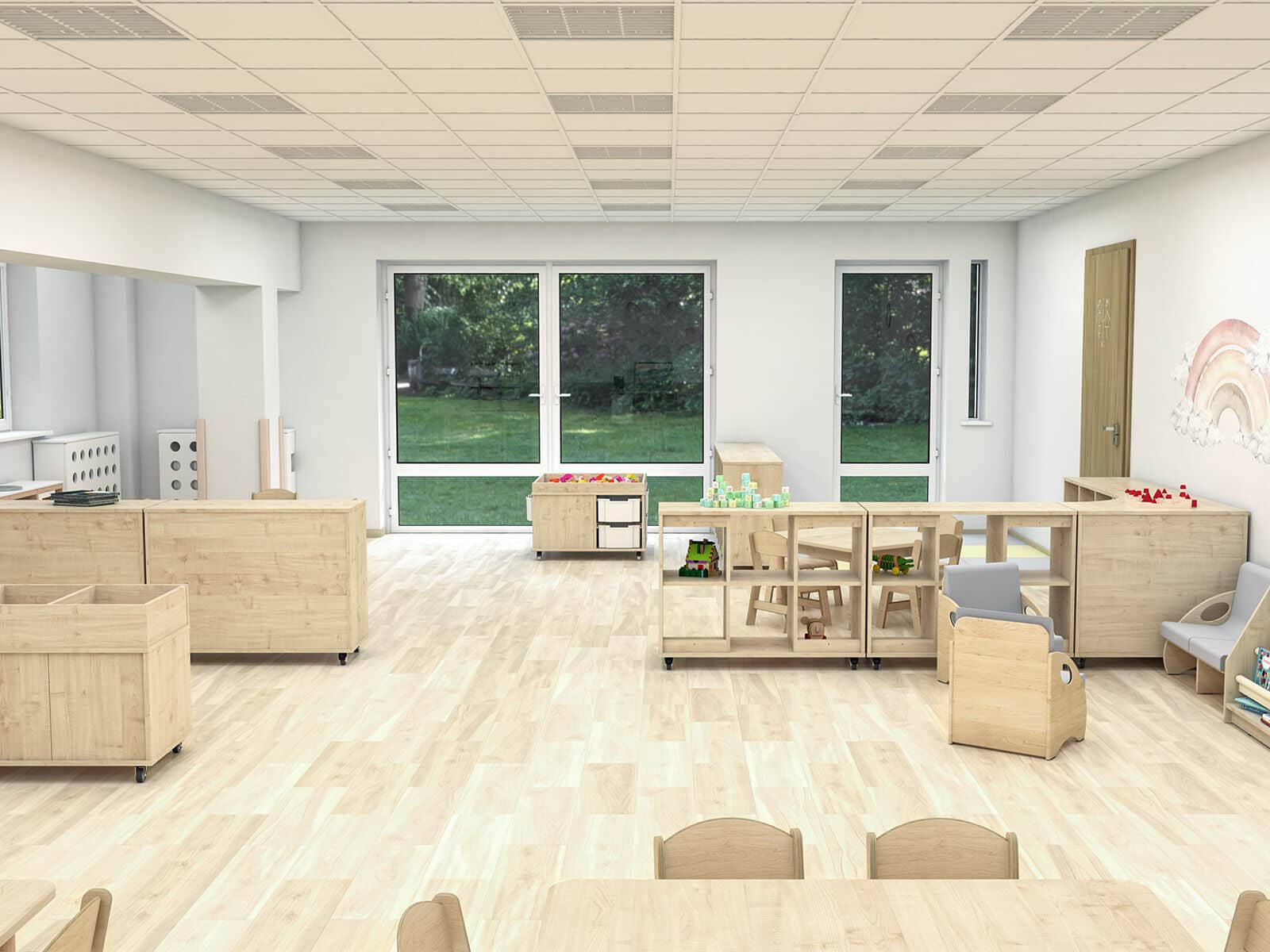 - Klare Strukturen schaffen: Gliedern Sie große Gruppenräume in übersichtliche Zonen für unterschiedliche Aktivitäten. Dies hilft Kindern bei der Orientierung, fördert konzentriertes Spielen und erleichtert die Arbeit in Kleingruppen.