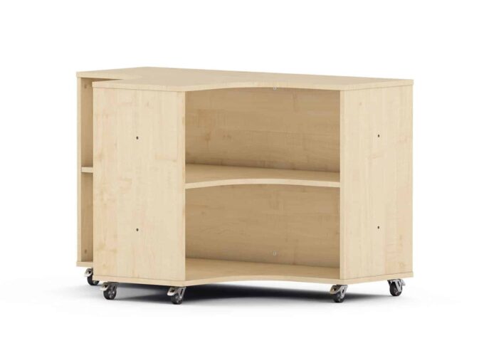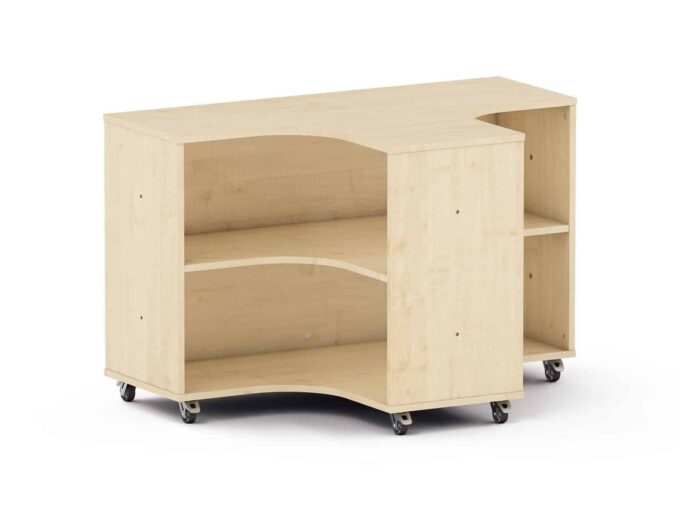 Entdecken Sie das Nova Raumteiler Eckregal in freundlichem Ahorn-Dekor – die intelligente und elegante Lösung, um große Gruppenräume in Kitas und Kindergärten flexibel zu gestalten und optimal zu nutzen. Dieses vielseitige Eckelement ist mehr als nur ein Regal; es ist ein kreatives Werkzeug zur Raumgestaltung, das Ihnen hilft, ohne feste Wände klare Strukturen zu schaffen. Trennen Sie lebhafte Spielbereiche von ruhigen Lese- und Kuschelecken, definieren Sie Zonen für verschiedene Aktivitäten und gewinnen Sie gleichzeitig wertvollen, beidseitig nutzbaren Stauraum. Mit seiner hellen, warmen Holzoptik fügt sich das Eckregal nahtlos in bestehende Möbelkonzepte ein und schafft eine einladende, harmonische Atmosphäre. Die mitgelieferten Beine und Rollen bieten Ihnen zudem maximale Flexibilität in der Nutzung – ob als festes Strukturelement oder als mobile Trennwand.