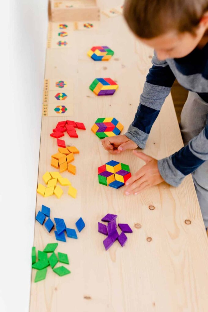 - Förderung von strategischem Denken: Beim Legen und Kombinieren der Rauten entwickeln die Kinder ihr strategisches Denken. Sie lernen, überlegte Entscheidungen zu treffen, um ansprechende und harmonische Muster zu schaffen.