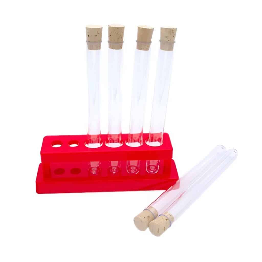 - Standfestes Design: Nichts ist frustrierender als umkippende Versuche. Die solide Basis der Halterung sorgt dafür, dass Reagenzgläser sicher stehen, während Kinder Flüssigkeiten umfüllen, mischen oder beobachten.